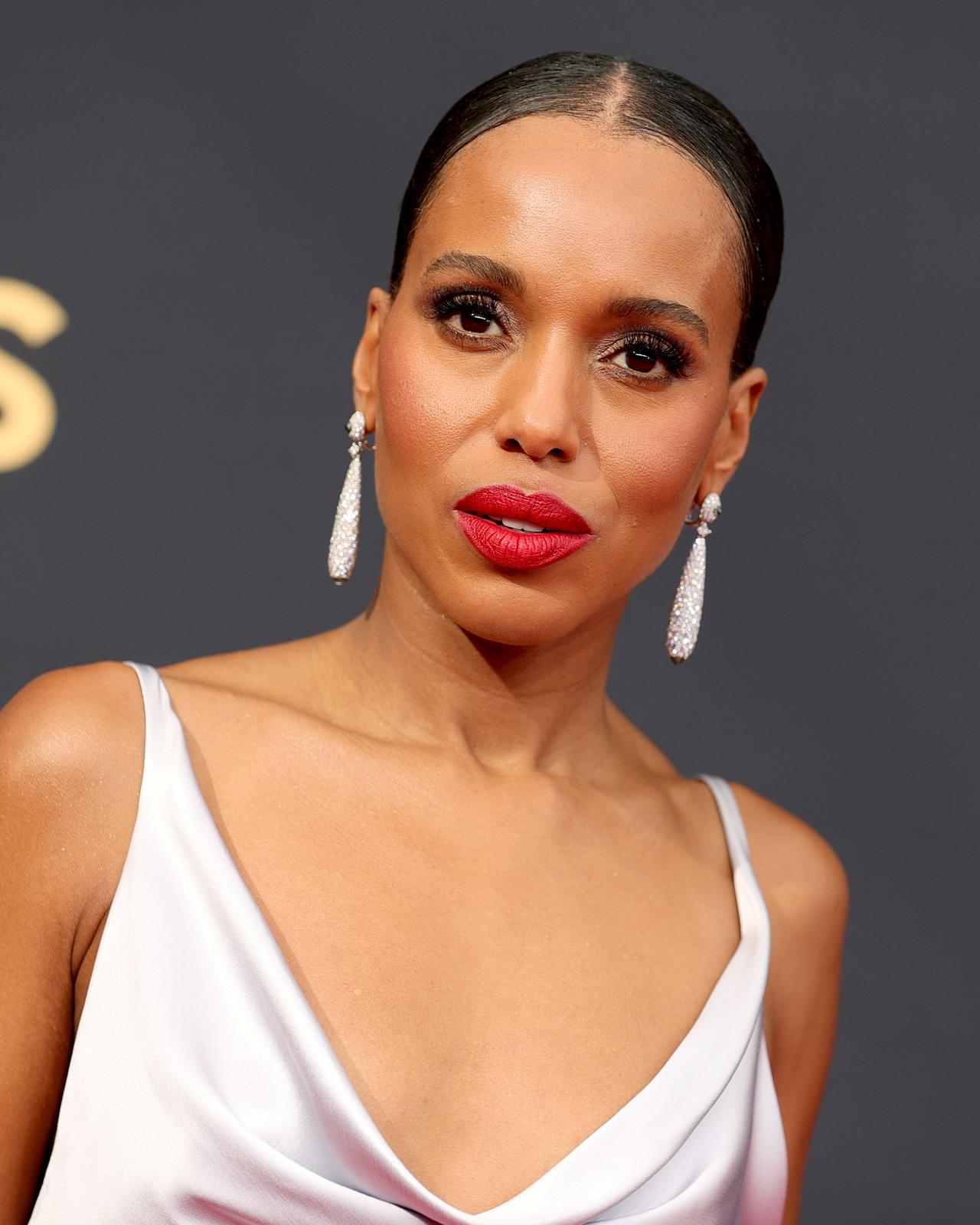 俳優のケリー・ワシントンは、オレンジと赤のちょうど中間ぐらいの絶妙なトマトレッドリップでこなれ感のあるメイクに。唇の輪郭は口角までしっかり描くことで、クラシカルな雰囲気を演出。