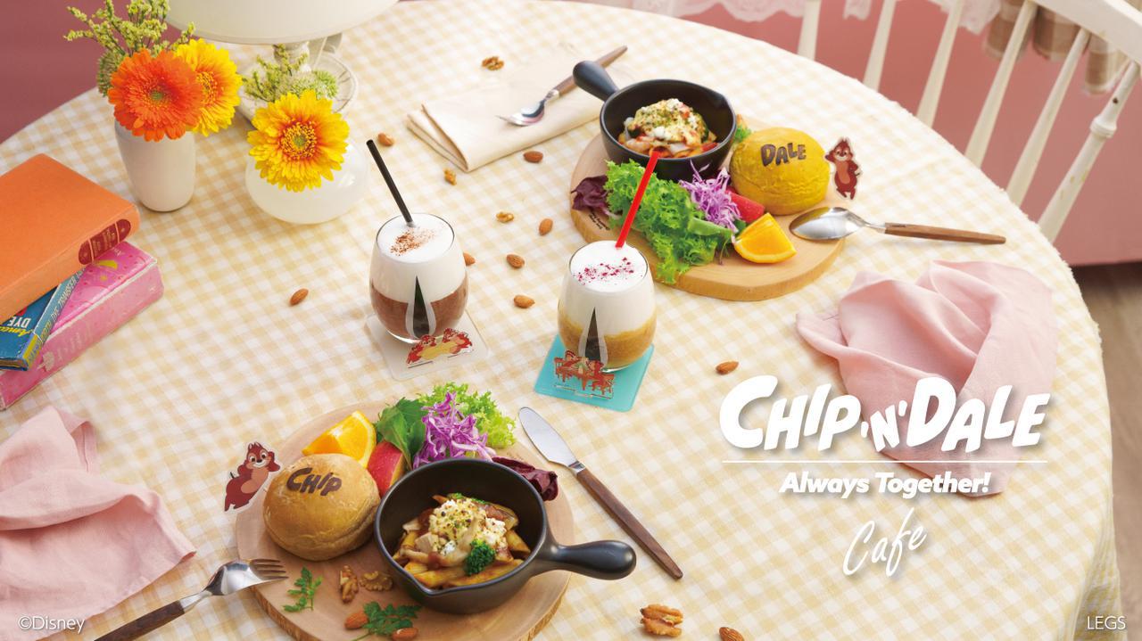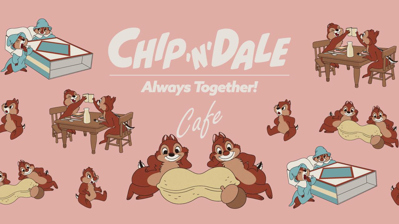 チップとデール (Chip ‘n Dale) は、ディズニーのキャラクターで、シマリスのチップとデールからなるコンビ。期間限定でオープンするカフェでは、そんな2人の大好物の“果物とナッツ”をたくさん使った健康的でヘルシーなメニューや、様々な日常を切り取ったアートを使用した、カフェオリジナルグッズで盛り上げる。