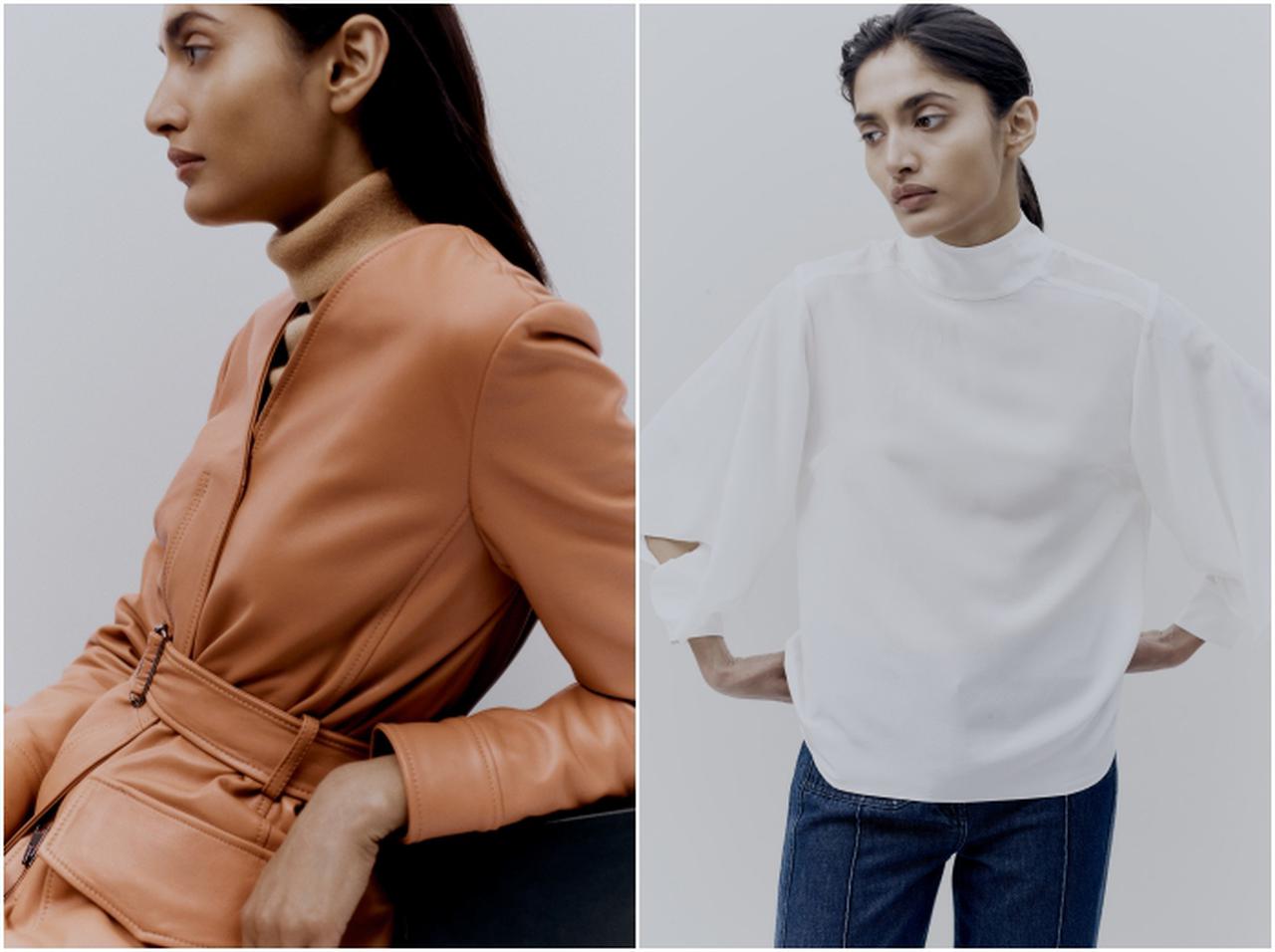 ソフトで大ぶりなスリーブが特徴的なハリ感のあるオーガニックコットン製シャツなど、個性的なディテールが施されたシャツスタイルも展開。そして、冬のニュートラルカラーで展開するピンタックディテールのT シャツや、オーガニックシルク製ベストやブラウスなど、ワードローブの主役アイテムにはツイストを効かせている。