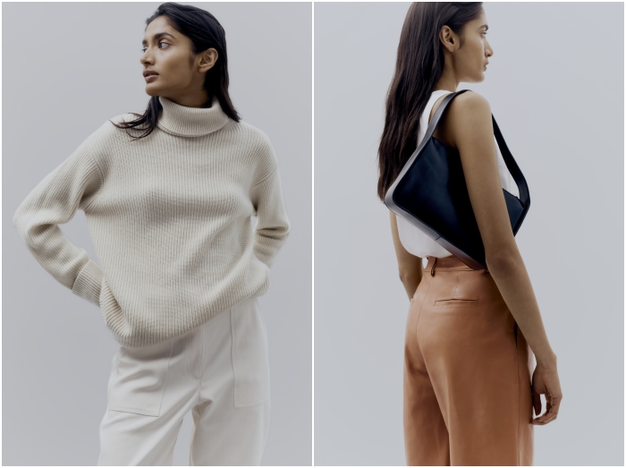 良質さで名高いIris & Inkのニットウェアでは、今回はリサイクルカシミアや倫理にかなった方法で調達されたオーガニックウールを使用。コレクションでは、冬のエッセンシャルアイテムであるチャンキーなリブ編みのカシミア製タートルネック、クラシックなカシミア製クルーネックセーター、アラン編み風ケーブルニットなどが展開。