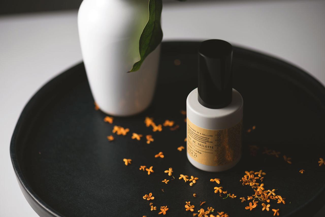 香りは、フルーティで柔らかな青さが漂う金木犀の香りをベースに、ジャスミン、イランイラン、マンダリンオレンジの精油をブレンド。甘く純粋なみずみずしさから、やがてノスタルジックな晩秋へと誘う魅惑的な香り。