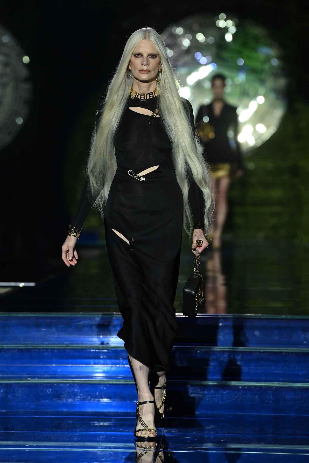 ちなみにこの新しいコラボがどのように生まれたかについてキムは「2月のプレタポルテ・ショーの後、ドナテラと一緒にここでディナーをしたんだ。シルビアとドナテラは意気投合したから、何か楽しいことをしたいと思った。それは、僕たちがヴェルサーチェを、彼女がフェンディをデザインするというデザインオフだった。この2つのメゾンは同じグループではないことを忘れてはいけない。僕たちは友人として、そしてお互いに敬意を払ってやってきた。商業的なものとして計画されたものではない」と米Vogueに語った。