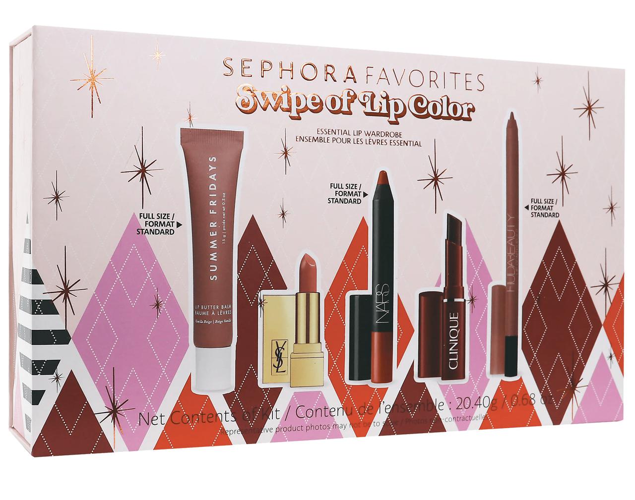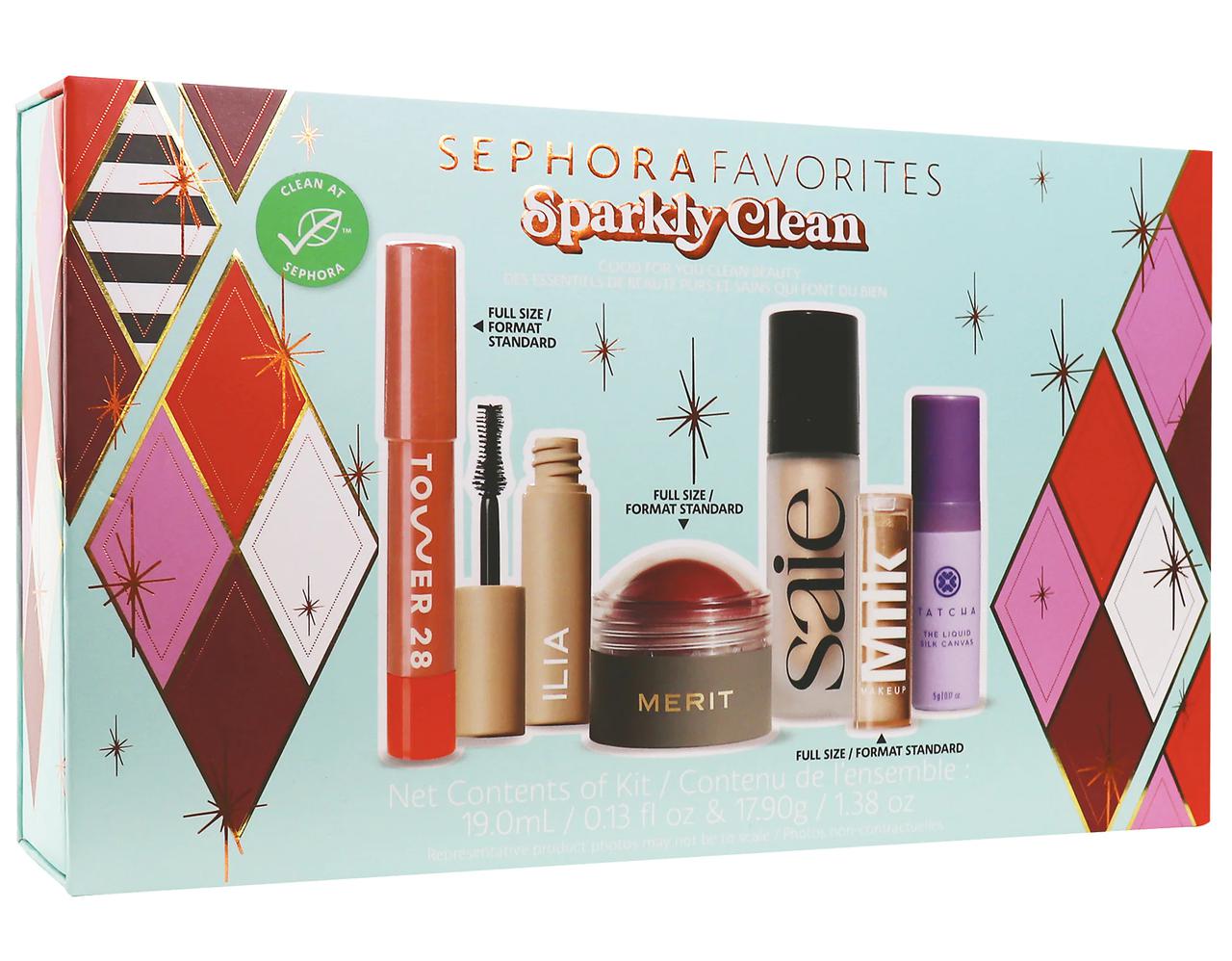 毎シーズンごとにさまざまなコスメの組み合わせが登場するセフォラ・フェイバリッツだけれど、とくに2021年注目なのは、クリーンビューティーブランドを詰め合わせた「Sparkly Clean Makeup Set(36ドル)」と人気のリップコスメがセットになった「Swipe of Lip Color Lipstick & Lip Balm Set(36ドル)」。