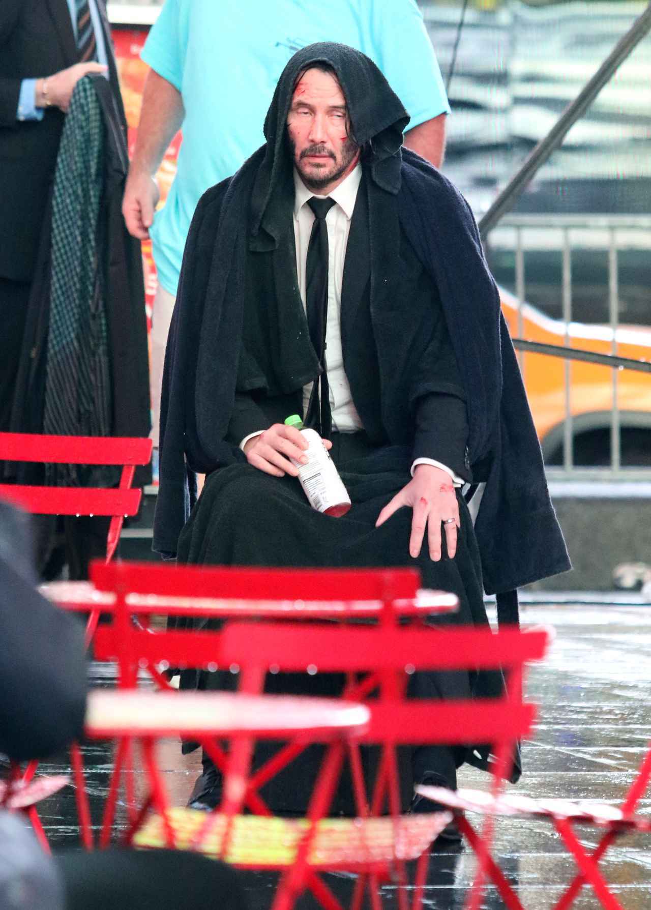 ファンから愛されるキアヌの姿が目撃されてきたのは、なにもプライベートだけではない。『ジョン・ウィック:パラベラム』の撮影中には、タオルを何枚も身体にかぶせられ、疲れから半目になってしまった瞬間が。