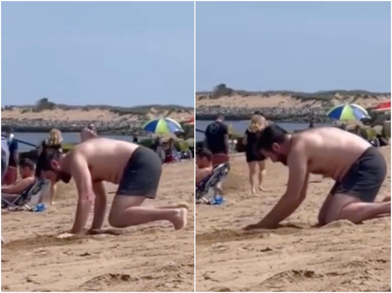 この日ビーチでくつろいでいた撮影者は、ある男性の行動を見て思わずカメラを回し始めた。