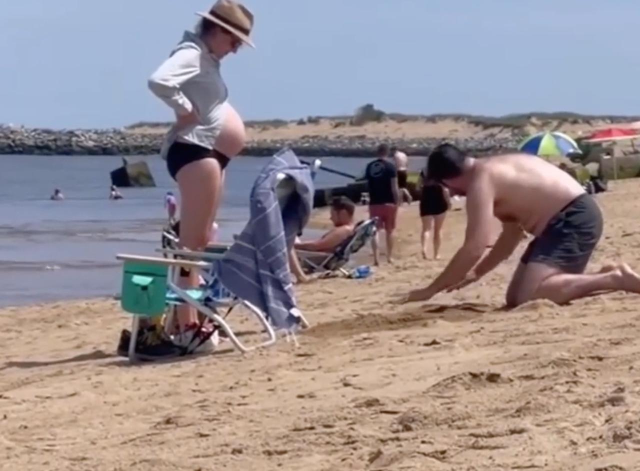 そう、男性は妊娠中の女性がうつぶせでビーチに寝られるように穴を掘っていたのだ。妊婦はお腹がある程度の大きさになるとうつ伏せ寝では苦しくなり、とくにうつ伏せ寝が好きという人には辛い我慢の時期となるため、これは素晴らしいアイディア。