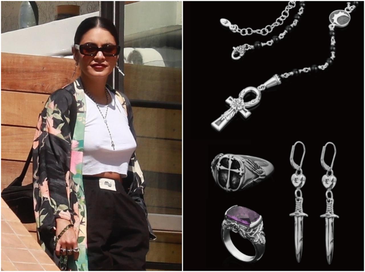 コーデの仕上げに欠かせないアクセサリーは、セレブの格上げスタイルの基本。俳優のヴァネッサ・ハジェンズがヘビロテで愛用するのは、アクセサリーブランド「Etah Love」のシルバーアクセ!(フロントロウ編集部)