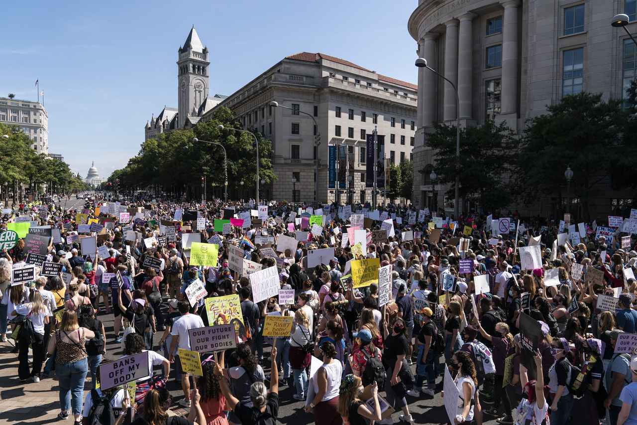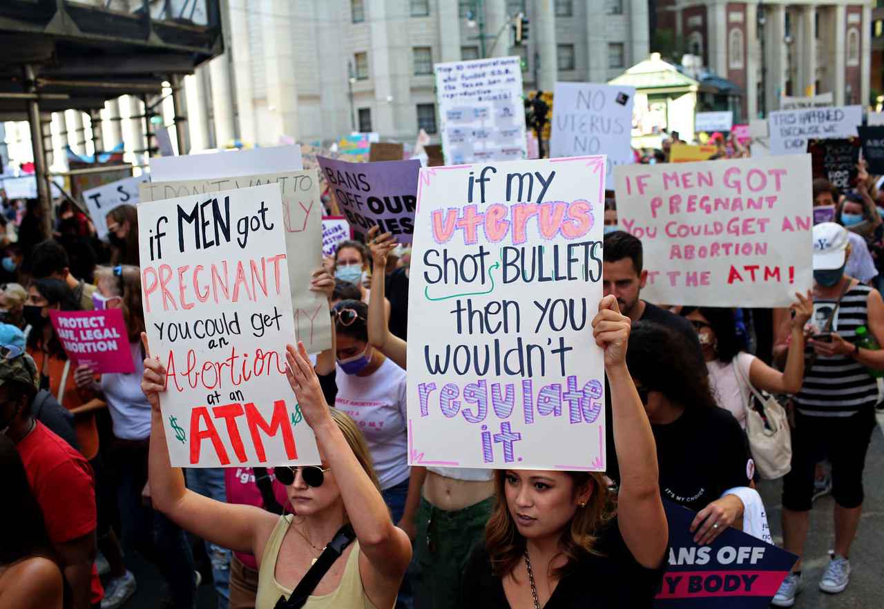 2021年10月2日に、アメリカ各地で女性の権利を認めるよう求めるウィメンズ・マーチが起こった。掲げられたプラカードにはどんな言葉が書かれていた?(フロントロウ編集部)