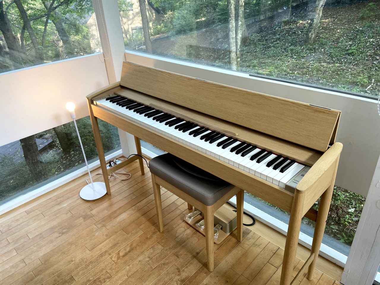木製であたたかみのある電子ピアノ。スマホとBluetoothでつなげばスピーカー代わりにも使える。