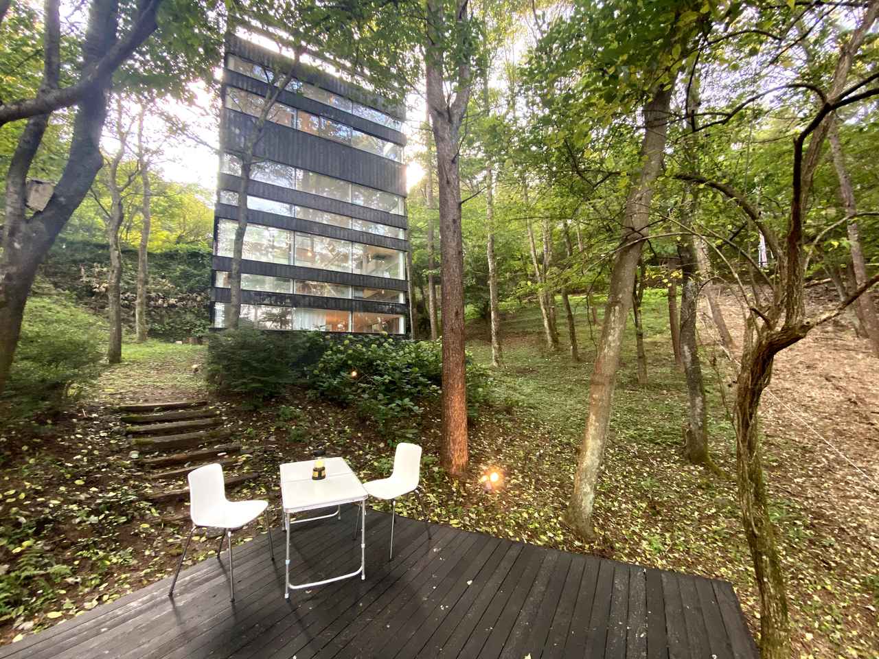 やってきたのは、長野の軽井沢エリアにある「信濃追分駅」より車で20分にある一棟貸し別荘「輪の家(Ring House)」。