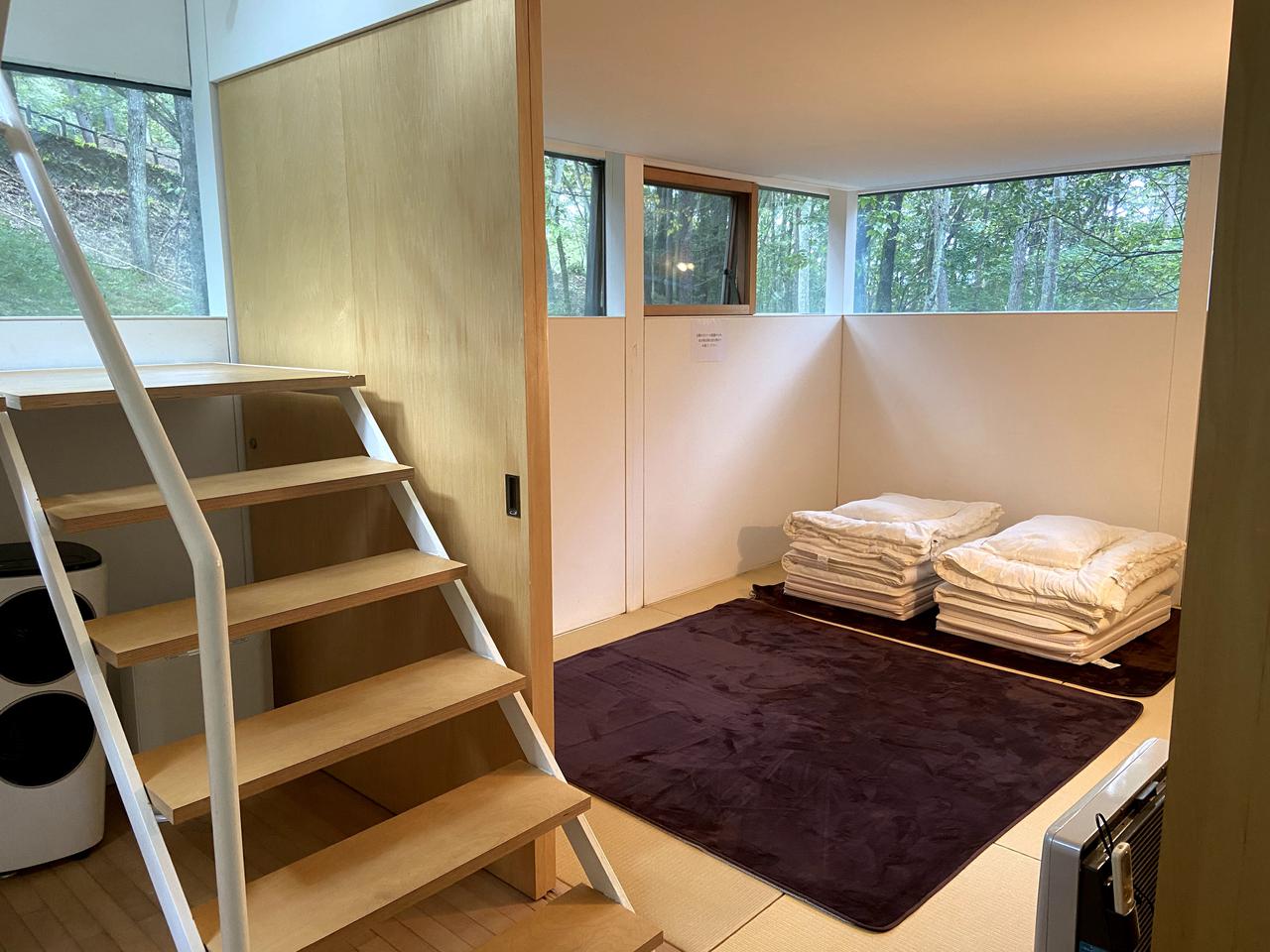 ただし、輪の家は景観の関係で「階段」や「手すり」に、少し隙間が空いている特殊なつくりになっているため、ペットや小さな子ども、ご年配の人と一緒に滞在する場合は足元に十分注意して。