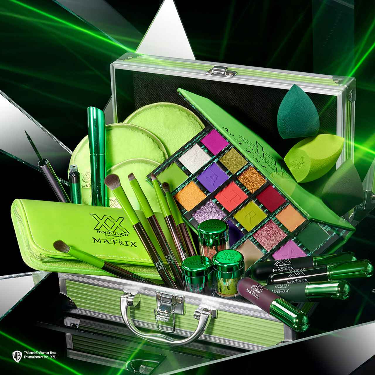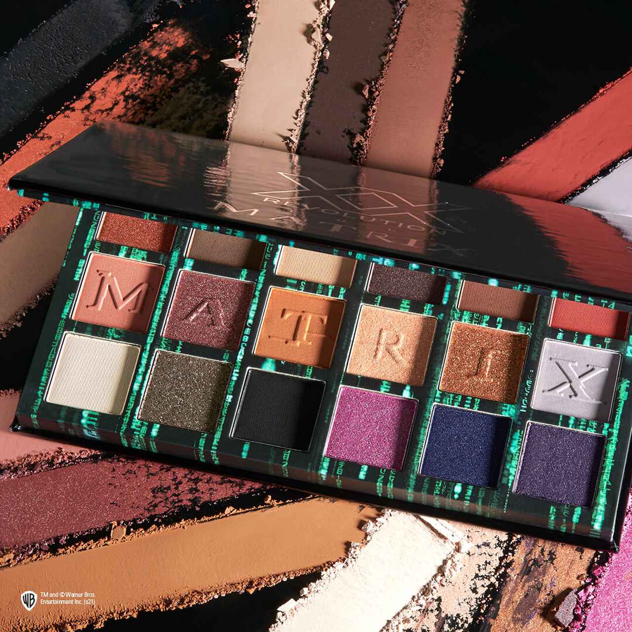 『マトリックス』のコラボコレクションでは、作品への愛とリスペクトが詰まった全13アイテムが登場。3種の多色アイパレットをはじめ、2種のリップセット、ピグメントセット、マスカラ、アイライナー、ブラシセット、スポンジセット、コスメケース、ポーチ、フェイスパッドがラインナップ。