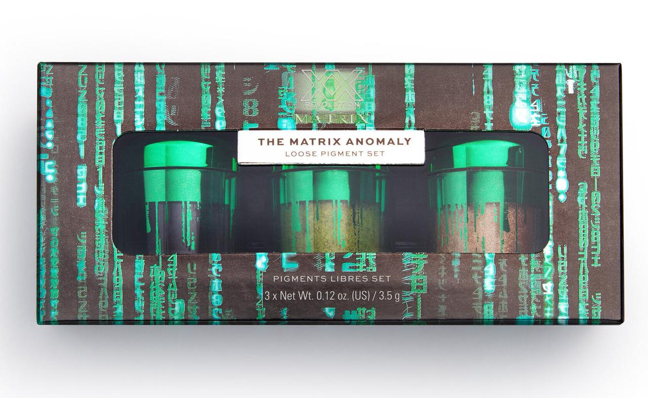 3色のルースピグメントが入ったセットは、カラー名がそれぞれトリニティ、モーフィアス、ネオと名付けられていて、トリニティはメタリックなライムグリーン、モーフィアスはマットなブラック、ネオはパールがたっぷり入ったベージュ。キャップの部分にも『マトリックス』のロゴが入っていて、ファンなら自慢したくなること間違いなし。