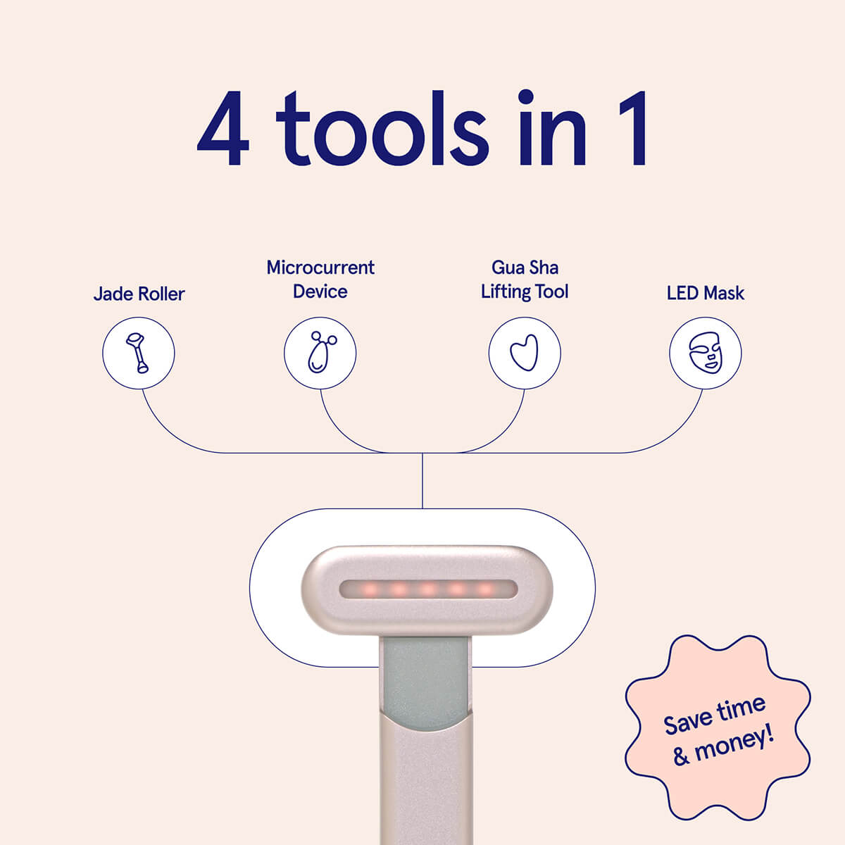「SolaWave Wand」はマイクロカレント、レッドライトセラピー、フェイシャルマッサージ、そしてヒート機能の4つの技術を搭載。簡単に言うと、マイクロカレントデバイスとLEDマスク、カッサ、翡翠ローラーという4つの人気美容ツールの働きを、1台でこなしてくれるということ。