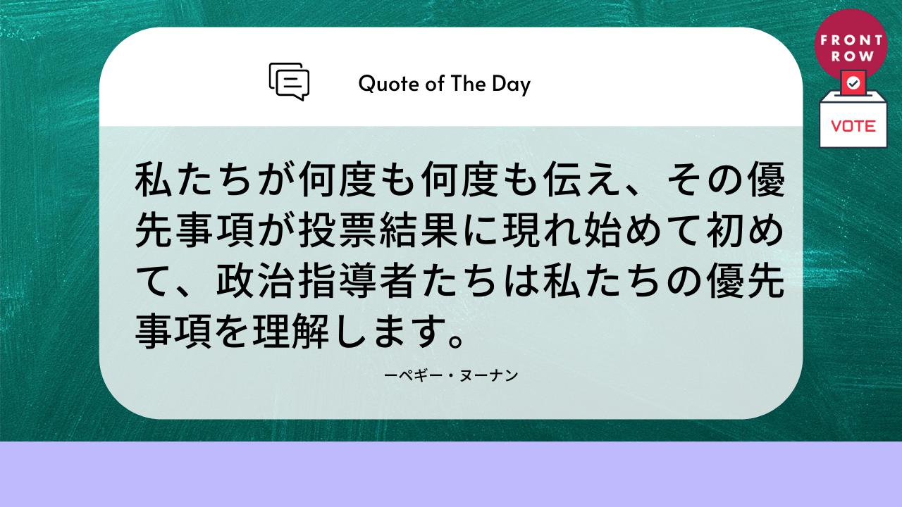 「私たちが何度も何度も伝え、その優先事項が投票結果に現れ始めてはじめて、政治指導者たちは私たちの優先事項を理解します」