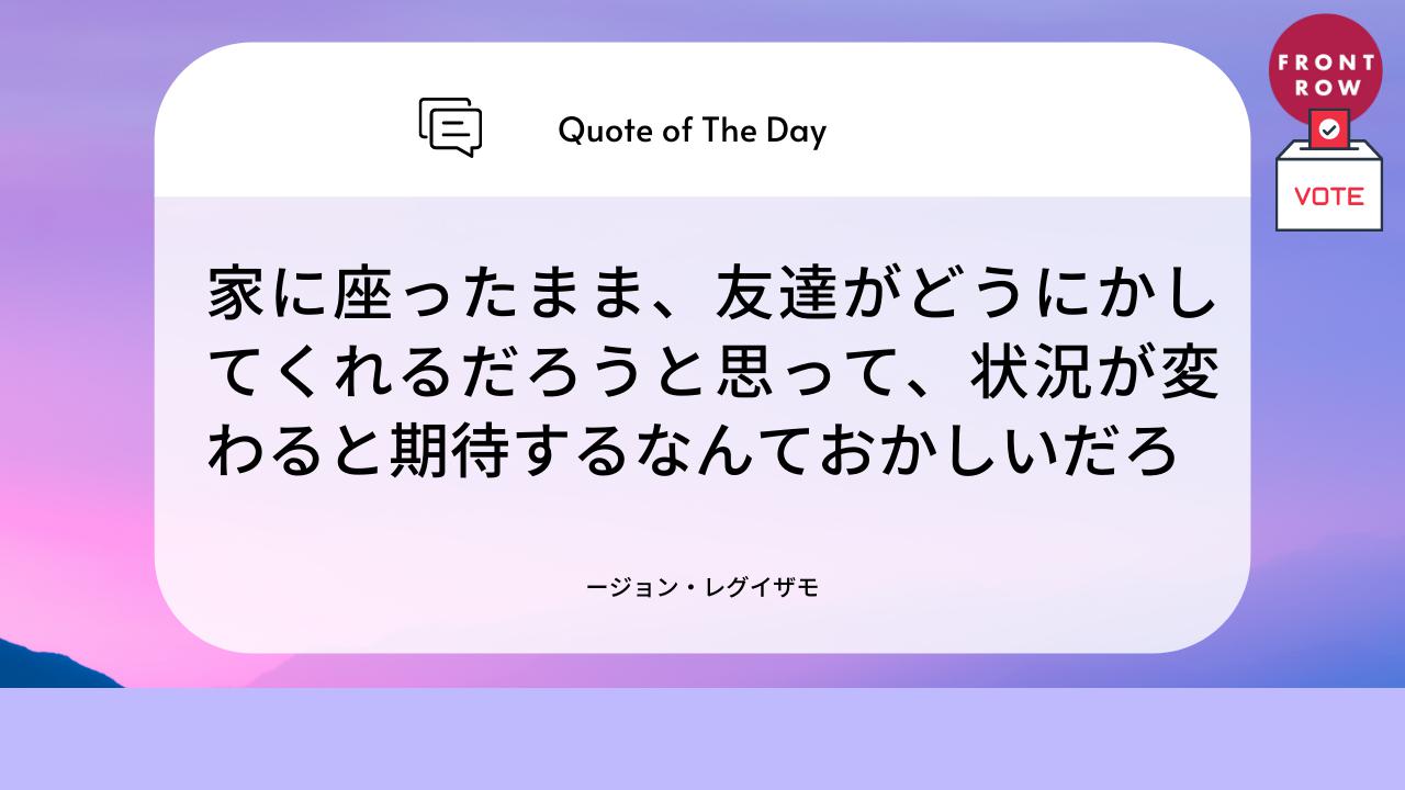 「家に座ったまま、友達がどうにかしてくれるだろうと思って、状況が変わると期待するなんておかしいだろ」
