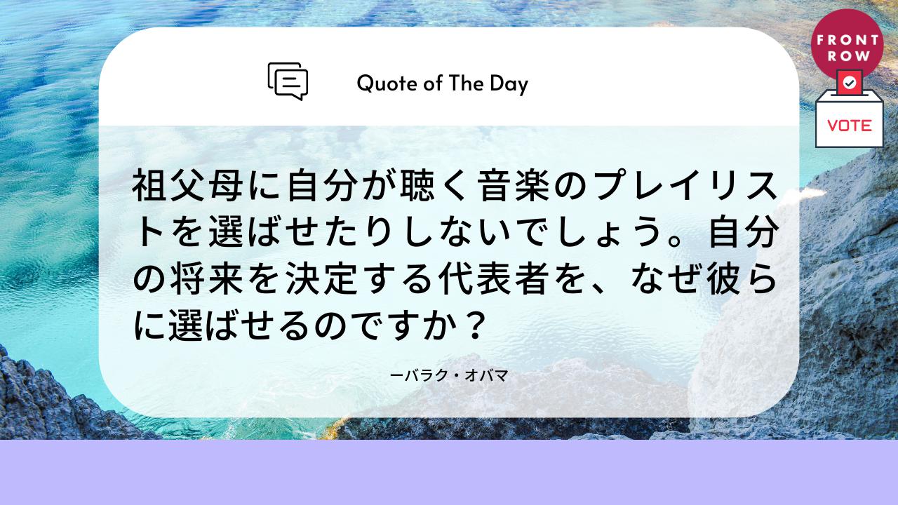 「祖父母に自分が聴く音楽のプレイリストを選ばせたりしないでしょう。自分の将来を決定する代表者を、なぜ彼らに選ばせるのですか?」