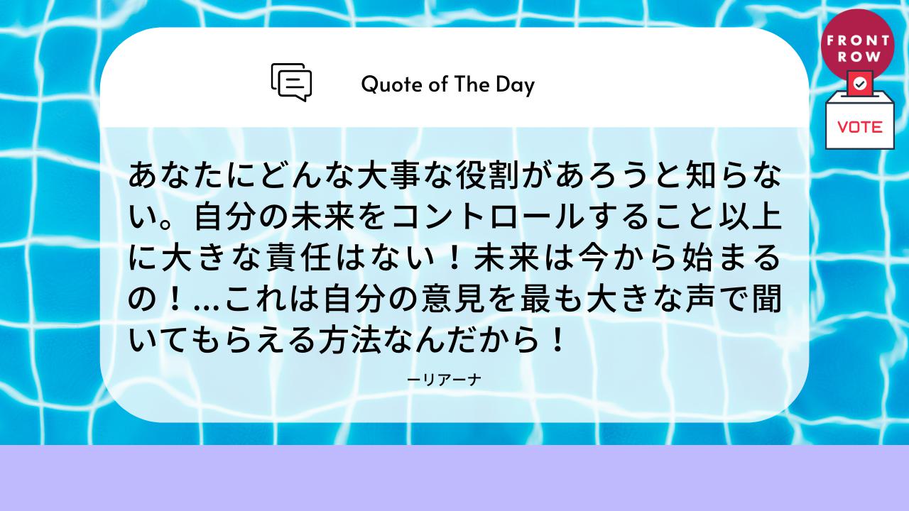 「あなたにどんな大事な役割があろうと知らない。自分の未来をコントロールすること以上に大きな責任はない!未来は今から始まるの!…(投票は)自分の意見を最も大きな声で聞いてもらえる方法なんだから!」