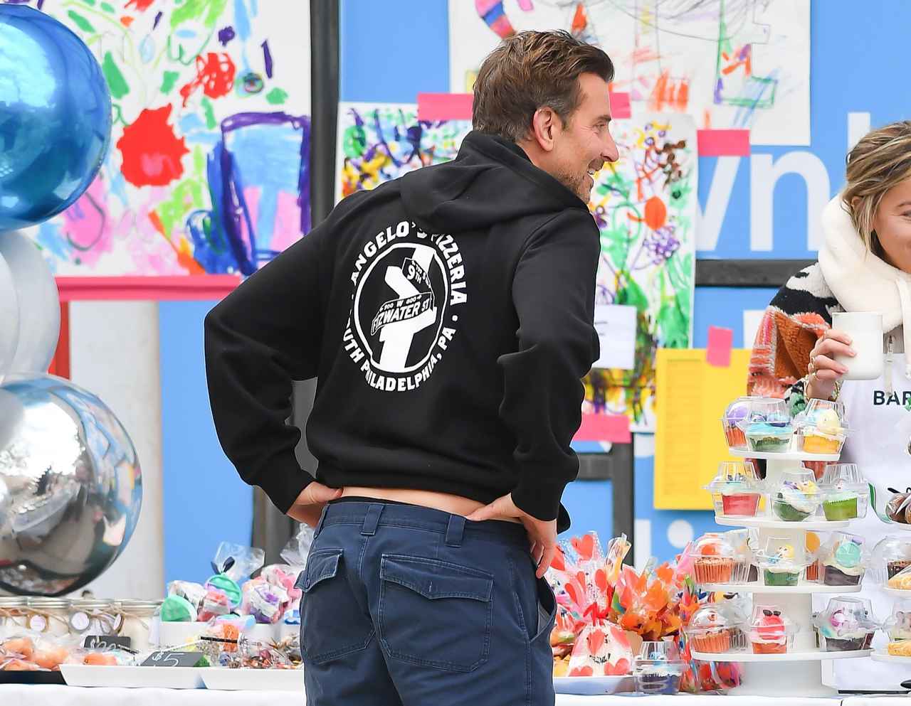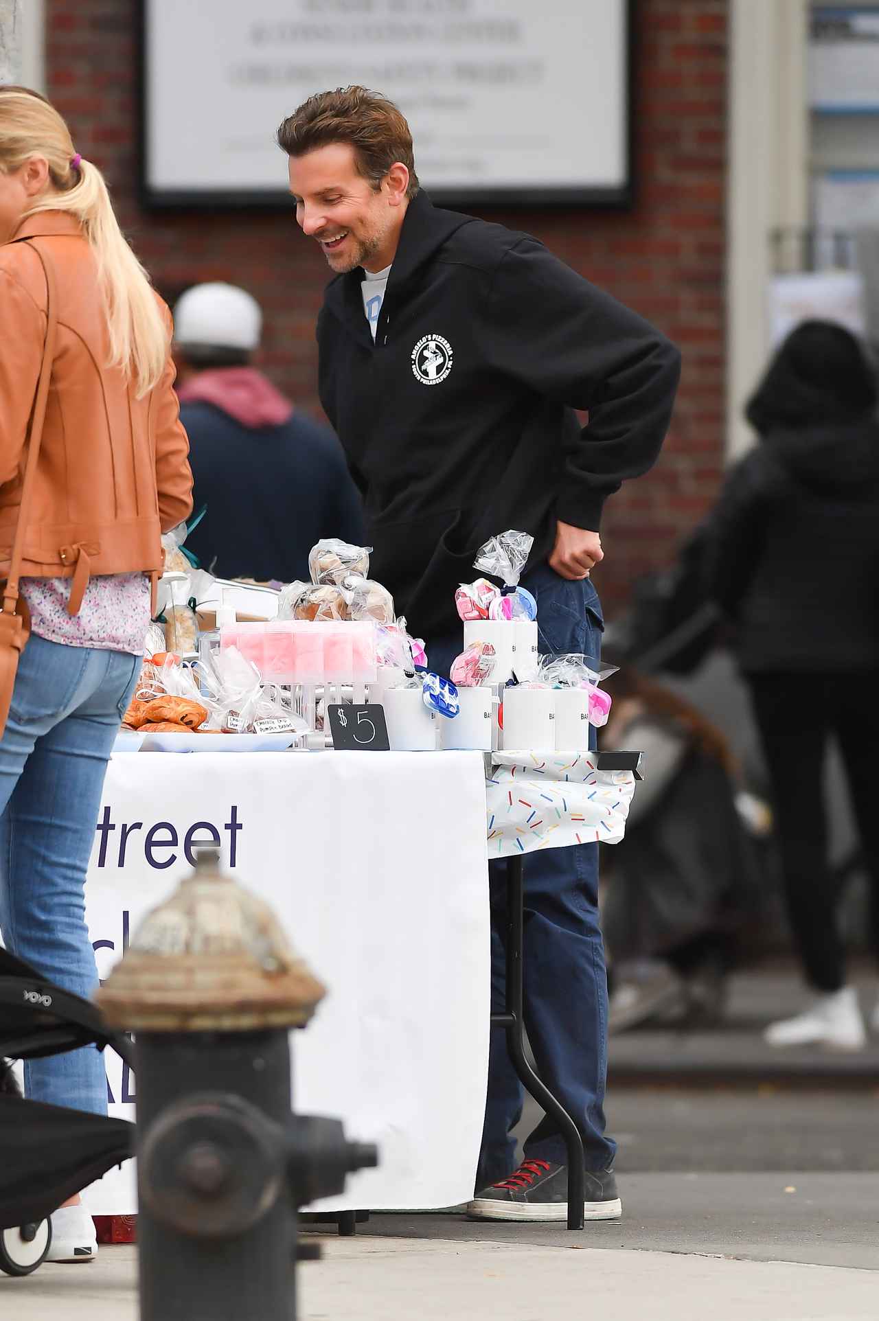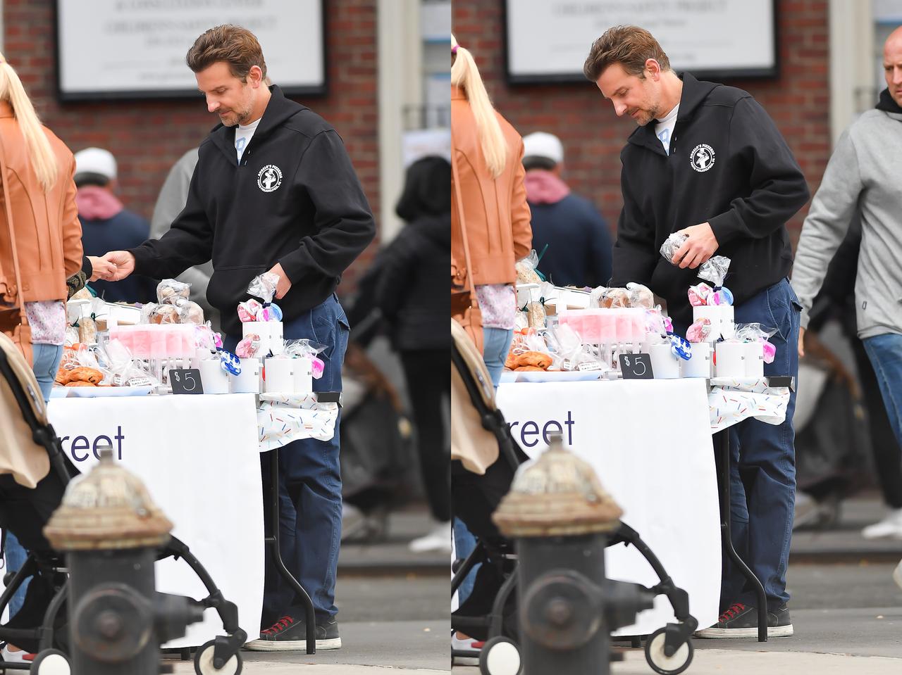 俳優のブラッドリー・クーパーが、ニューヨークの道端で開催されていたベイクセールに顔を出す姿がキャッチされた。(フロントロウ編集部)