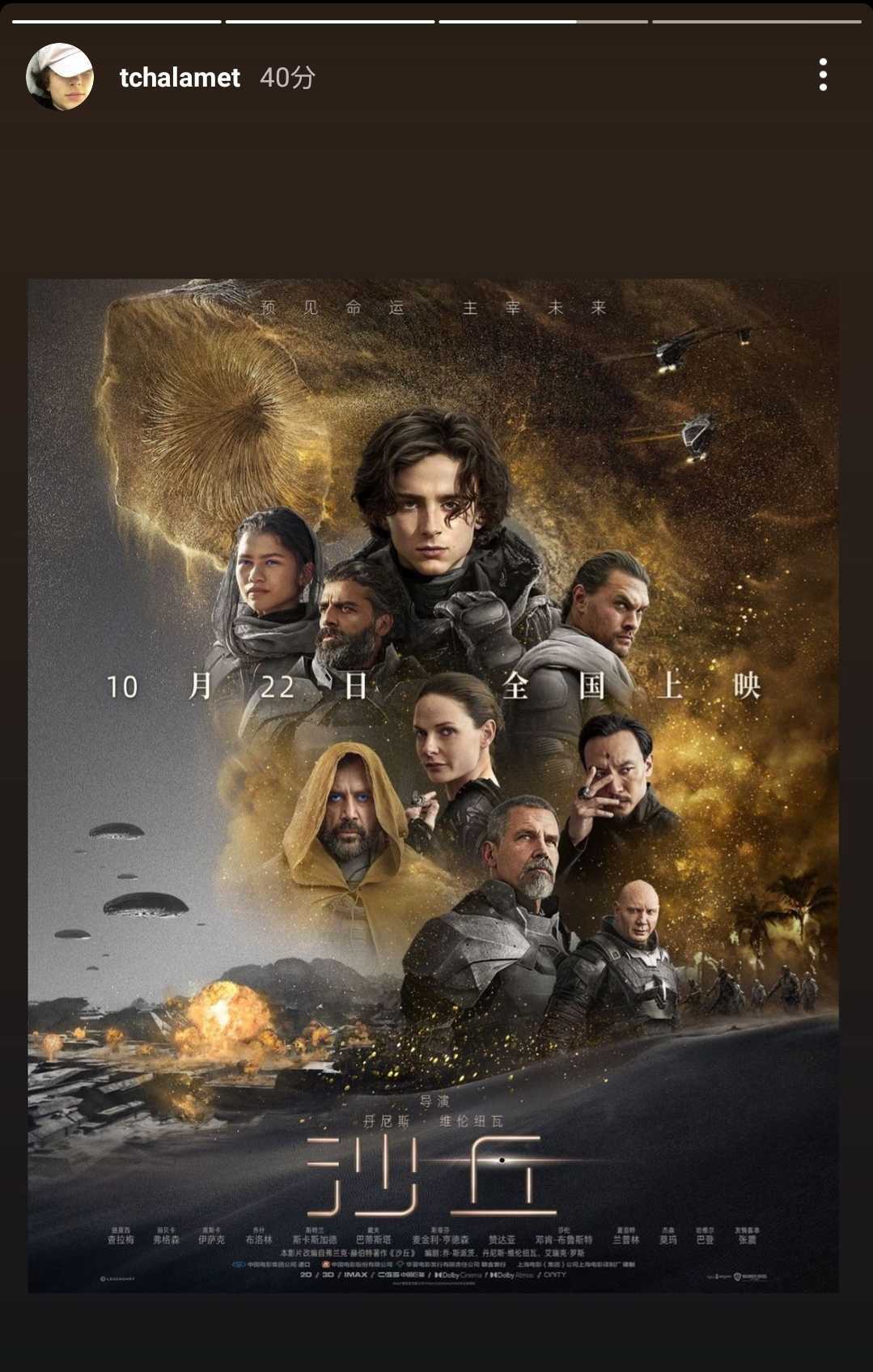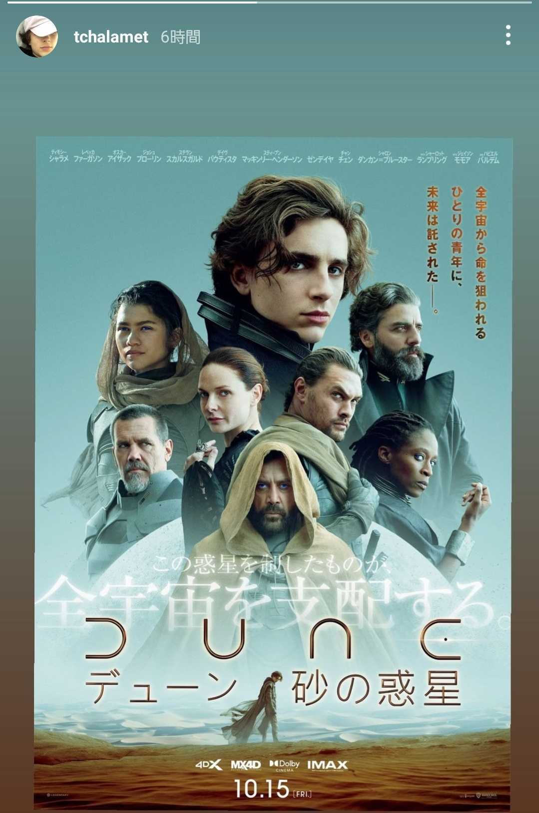そしていよいよ、10月15日の日本公開日。ティモシーは、なんと他の国同様に日本版のポスターを自身のインスタグラムにアップし、『DUNE/デューン 砂の惑星』が日本で公開されたことをファンに伝えた。