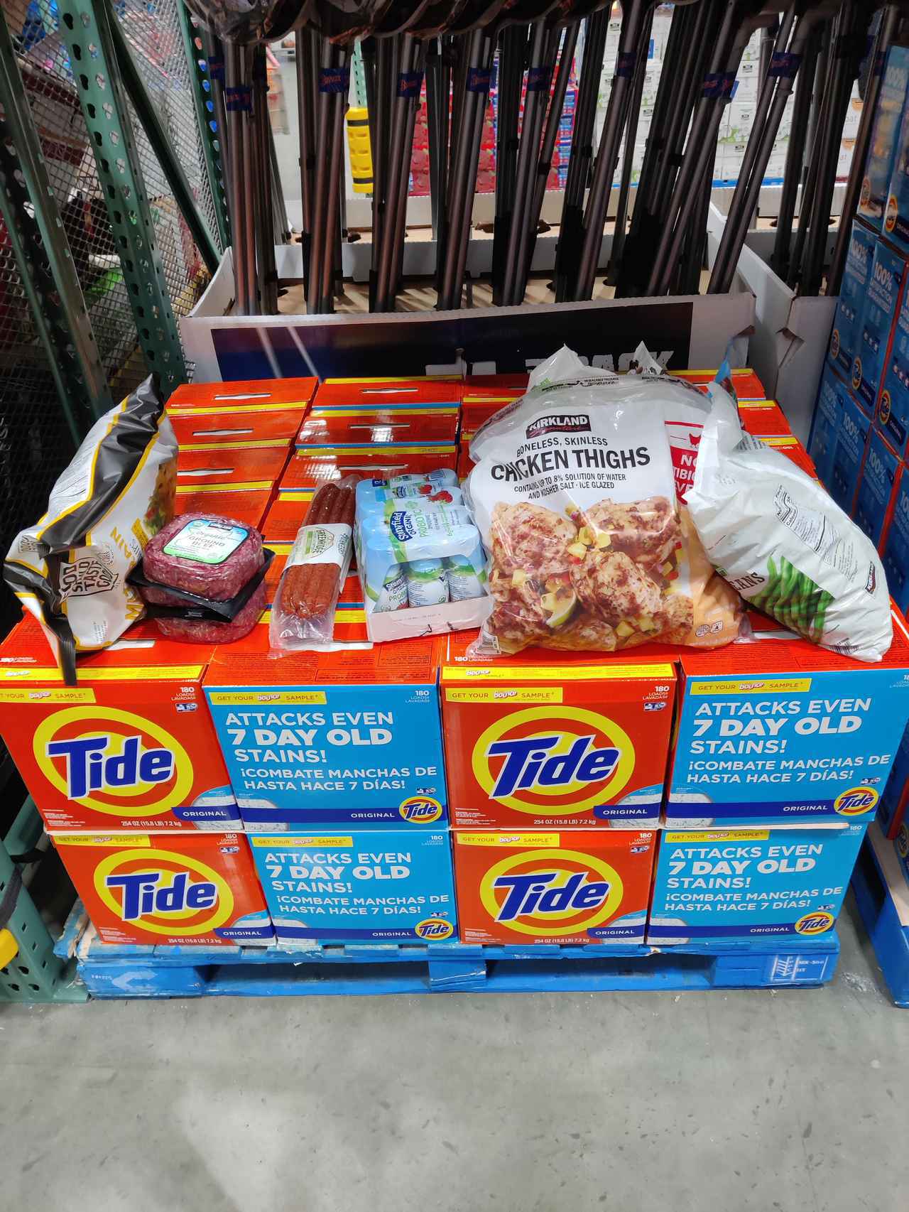 その写真に写るのは、別の場所から取ってきたと思われる商品が、洗剤の上に置かれて放置された様子!