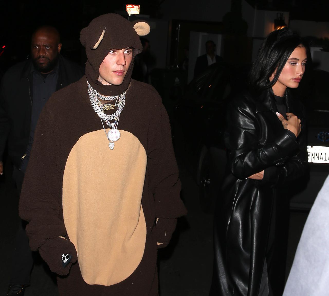 ジャスティンはクマの着ぐるみ、上の写真だと少々わかりにくいがヘイリーはキャットウーマンの仮装をしてほかセレブとの交流を楽しんだ。(フロントロウ編集部)