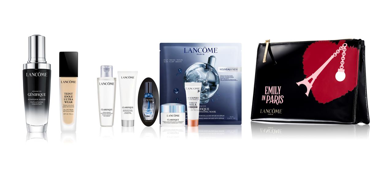 ランコムのベストセラー美容液「ジェニフィック アドバンスト N」50mLや、リキッドファンデ-ション「タンイドル ウルトラウェア リキッド」、その他ランコムのスペシャルスキンケアルーティンが叶う豪華なキットが、『エミリー、パリへ行く』とのコラボポーチ付きで登場。ランコムのベストセラーアイテムが付いて約16,500円(※1)もお得になるセットとなっている。