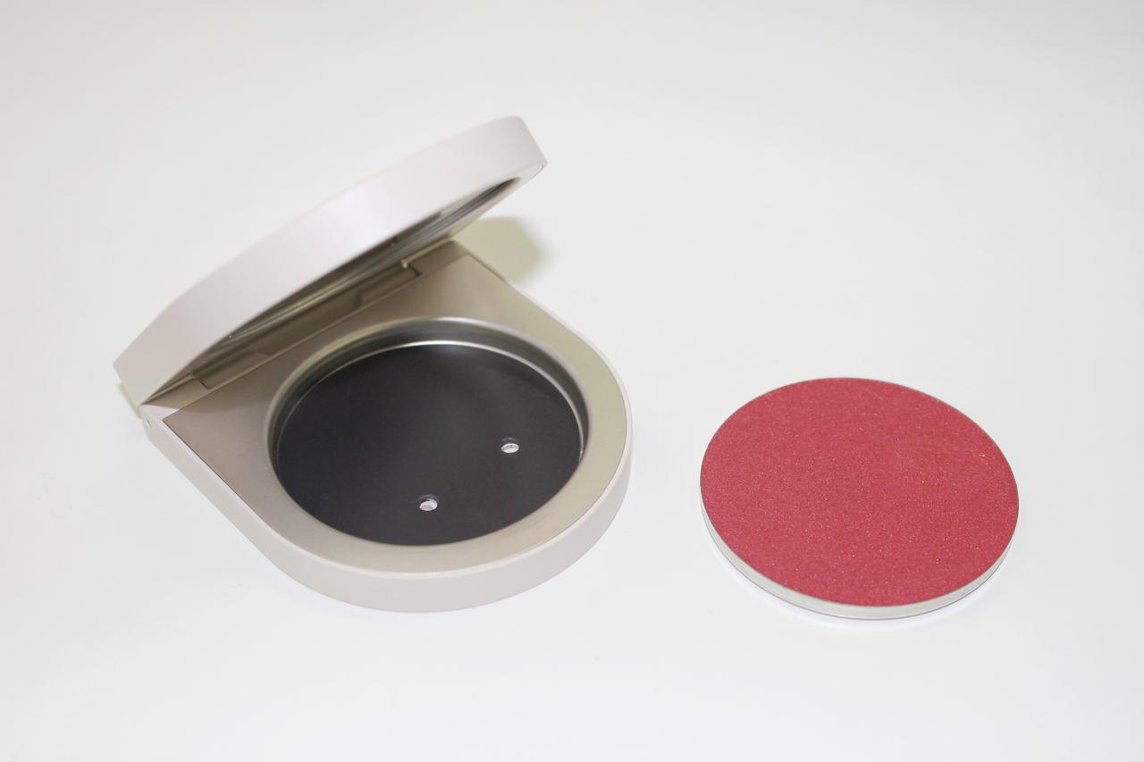 いま海外で大注目のローズ・インクのBLUSH DIVINEは、半月型のミラー付きコンパクトに入ったクリームタイプのチーク。今回はそのなかでも、ロージーの大のお気に入りだという深みのあるベリーカラーのAZELIAをチョイス。