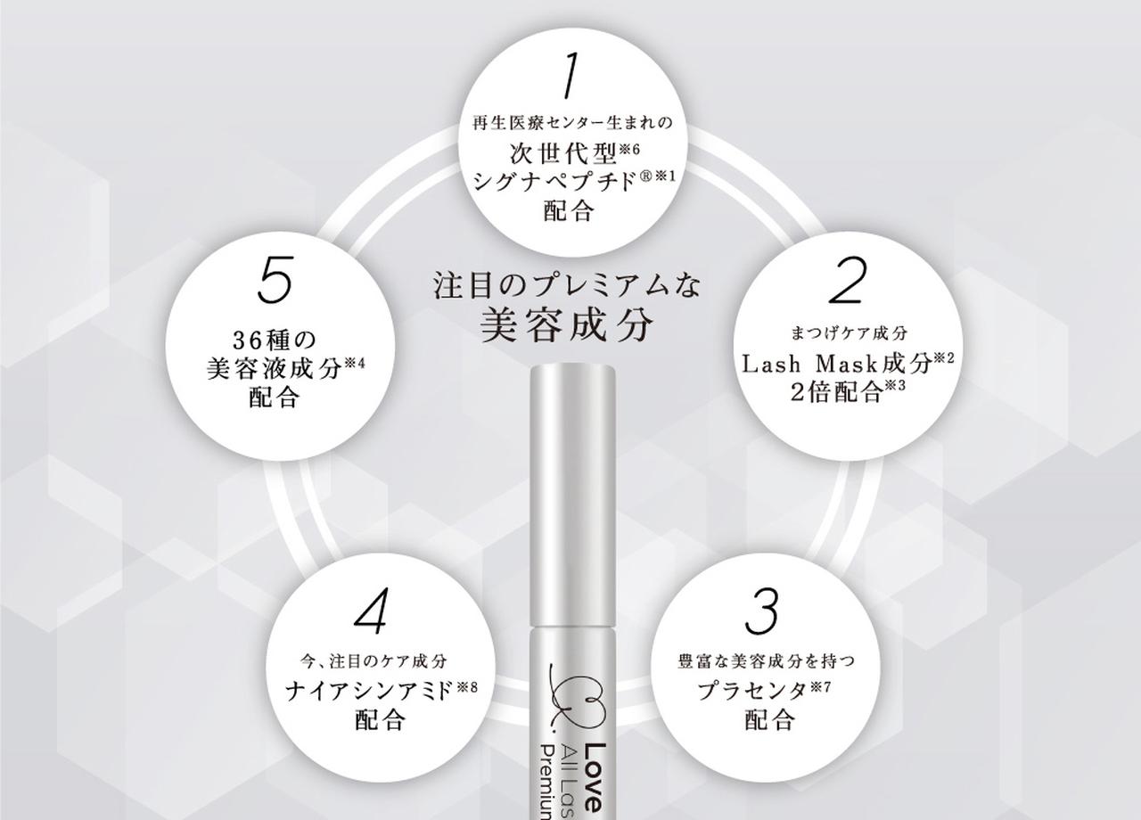 「ラブ・ライナー オールラッシュセラム プレミアム<まつげ美容液>」は、ラブ・ライナーを展開するmsh株式会社が、再生医療関連事業を展開するセルソース再生医療センター、まつげエクステンション・パーマ専門サロンを展開するプロケアアイラッシュと共同開発して誕生したまつげ美容液。