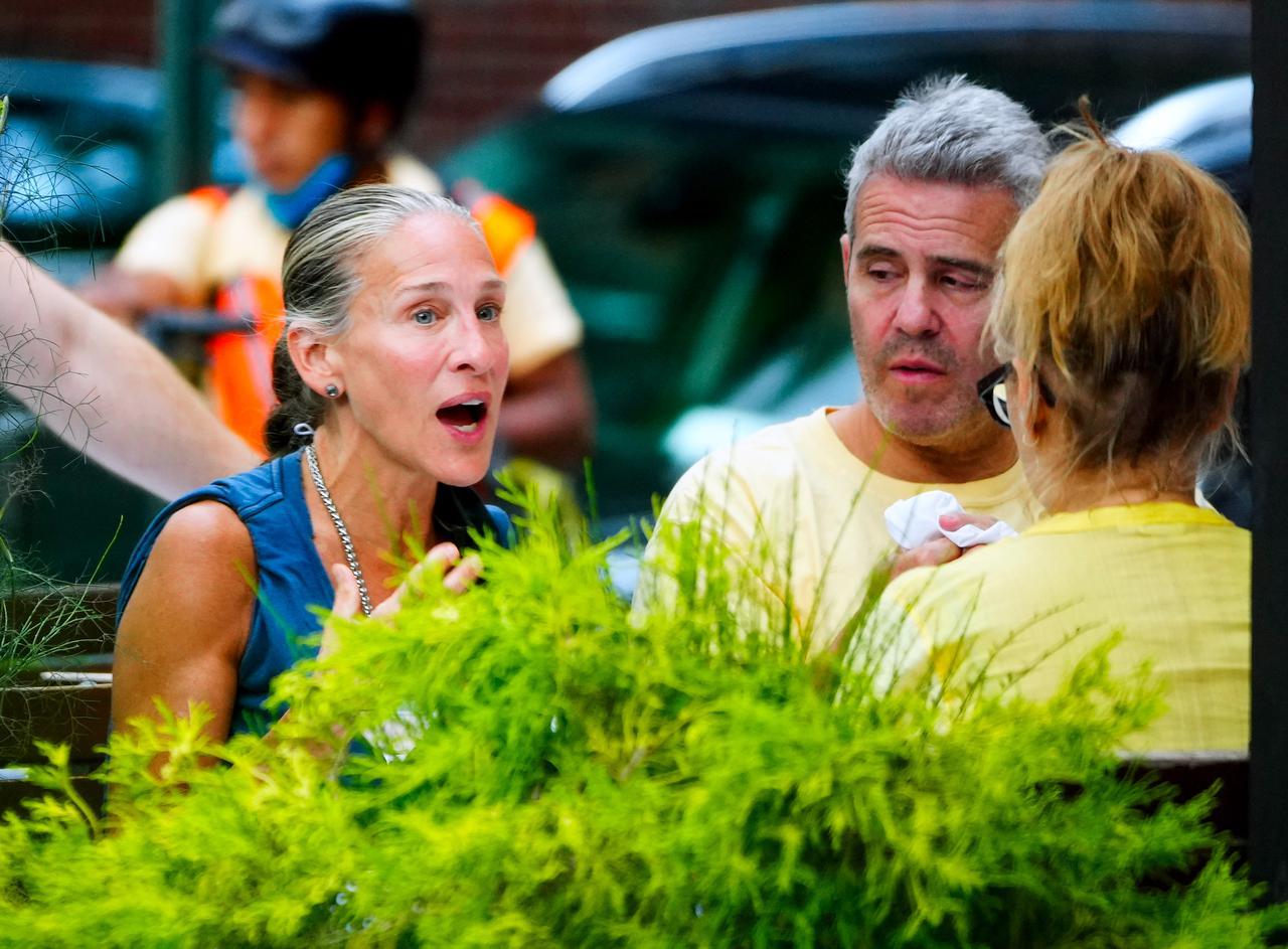 ニューヨーク市内にあるレストランでランチをするサラ・ジェシカ・パーカー(左)とアンディ・コーエン(右)。