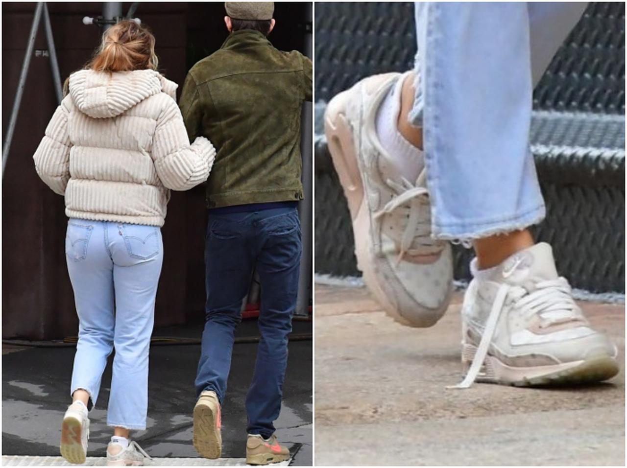 ブレイクは、モンクレールの新作ダウンジャケットにライトブルーのデニムを合わせ、足元にはダウンと同系色のNike(ナイキ)のエアマック90のドットプリントスニーカーで、ソフトなカラーコーデを作って。