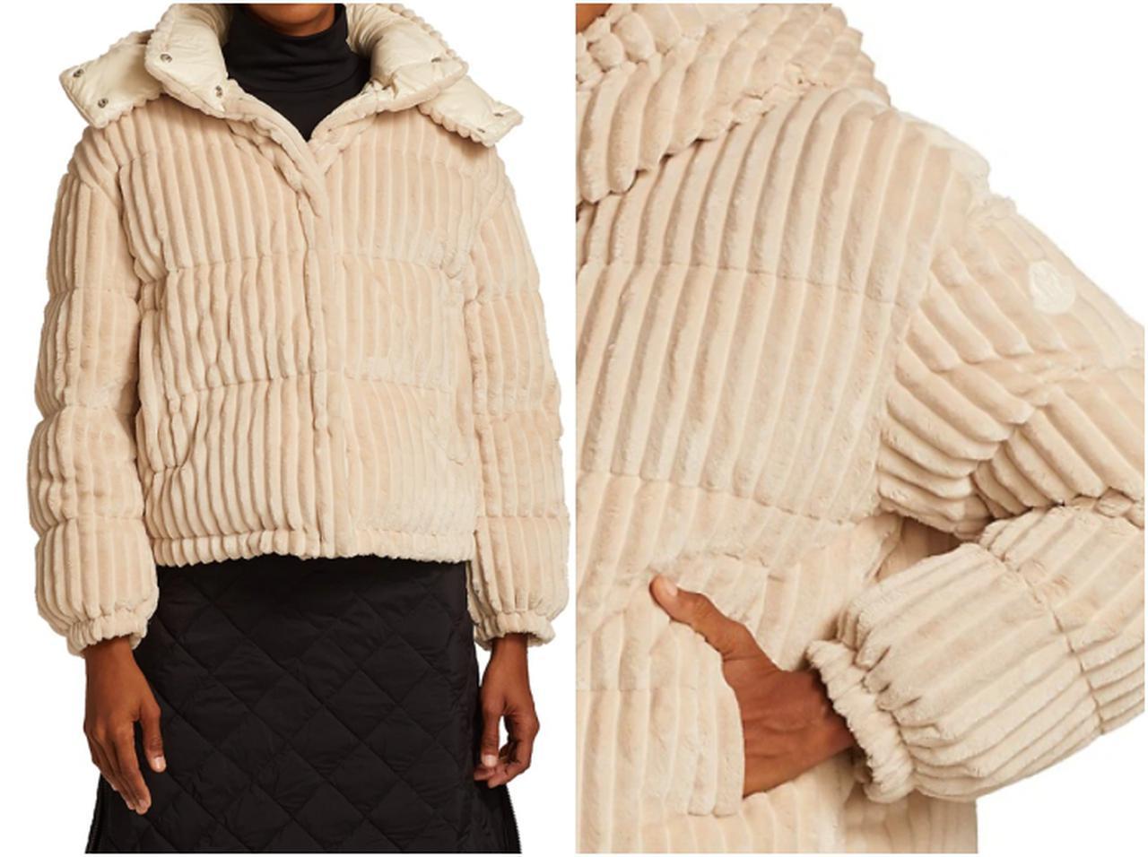ブレイクが愛用するモンクレールのダウンジャケットは、特大のワイドコーデュロイで作られた、印象的なアイテム。ネックラインはハイスタンドカラーでデザインされ、高い防寒性も備えながらも、ベージュカラーでモコモコとしたフォルムがキュートな印象。