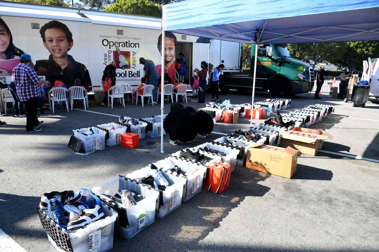 ロサンゼルスの子供たちを支えるNPO団体Assistance League of Los Angelesのなかの1つであるOperation School Bell(OSB)が保護する小学生の子供たちは、この日、通学に使えるリュックや洋服、本などを得た。