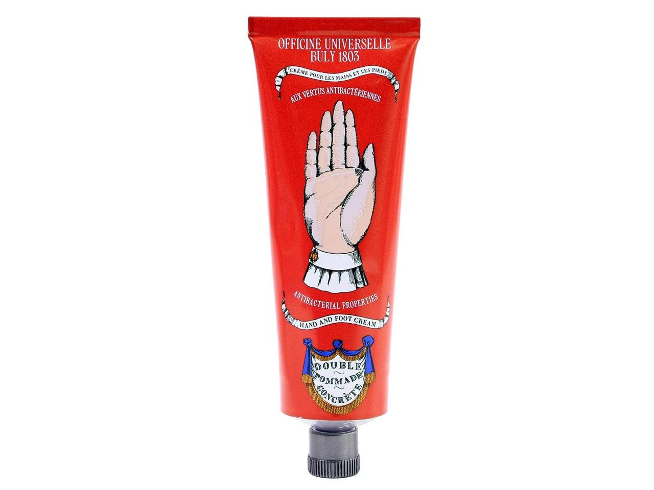 おしゃれギフトとして不動の人気を誇るOFFICINE UNIVERSELLE BULY(オフィシーヌ・ユニヴェルセル・ビュリー)の人気ハンドクリーム「ドゥーブル・ポマード・コンクレット」。シアバターを豊富に含んだベースに、セサミオイルとミツロウを組み合わせ、ユーカリとスウィートオレンジのエッセンシャルオイルが心地良い香りとともに、肌にうるおいを与えてくれる。また殺菌作用も期待できるので、外出時のお供にもピッタリ。