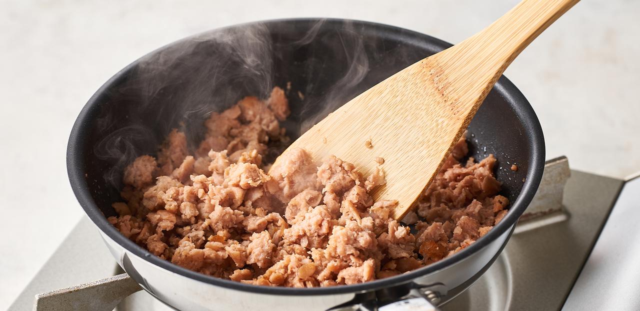 調理方法も豊富で、解凍後7分程度炒めると、チャーハン、パスタソース、ガパオライスの具などとして使える。また、ハンバーグやミートボールといった定番の肉料理もつくることができるため、プラントベース料理の幅を広げてくれる製品になっている。