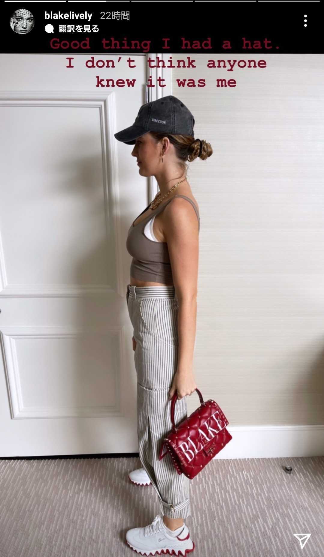 いつもゴージャスに着飾るブレイクも、テイラーのミュージックビデオで監督を務めた際は、動きやすさを重視したかなりカジュアルなスタイルで現場へ。ブレイクが「ハットがあってよかった。誰も私だって気づかなかったと思う」とインスタグラムで語るほど裏方として徹していたが、よく見ると、手には「BLAKE」と名前が大きくデザインされたバレンティノ(Valentino)のバッグが。