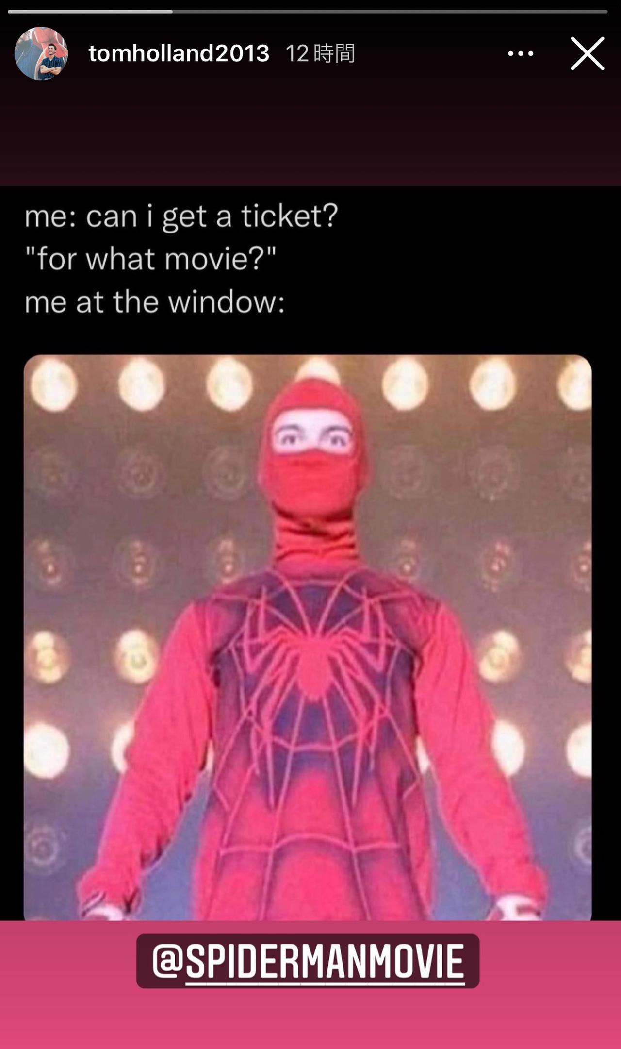そうした背景があるなかで、『スパイダーマン:ノー・ウェイ・ホーム』で主演を務めるトム・ホランドがインスタグラムストーリーズに投稿した画像が話題に。トムは、「僕:チケットを買えます? 『どの映画ですか?』 窓口にいる僕」というコメントを添えて、とある画像を投稿。