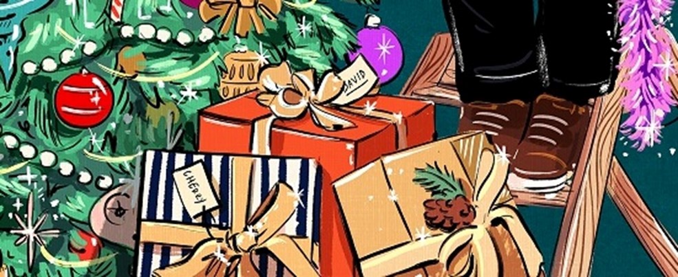 そして2つ目。クリスマスツリーの下にはプレゼントが2つ並んでいるのだが、宛名にエルトンの夫デヴィッド・ファーニッシュとエドの妻チェリー・シーボーンの名前がデザインされており、パートナーに向けての愛がここで確認できる。