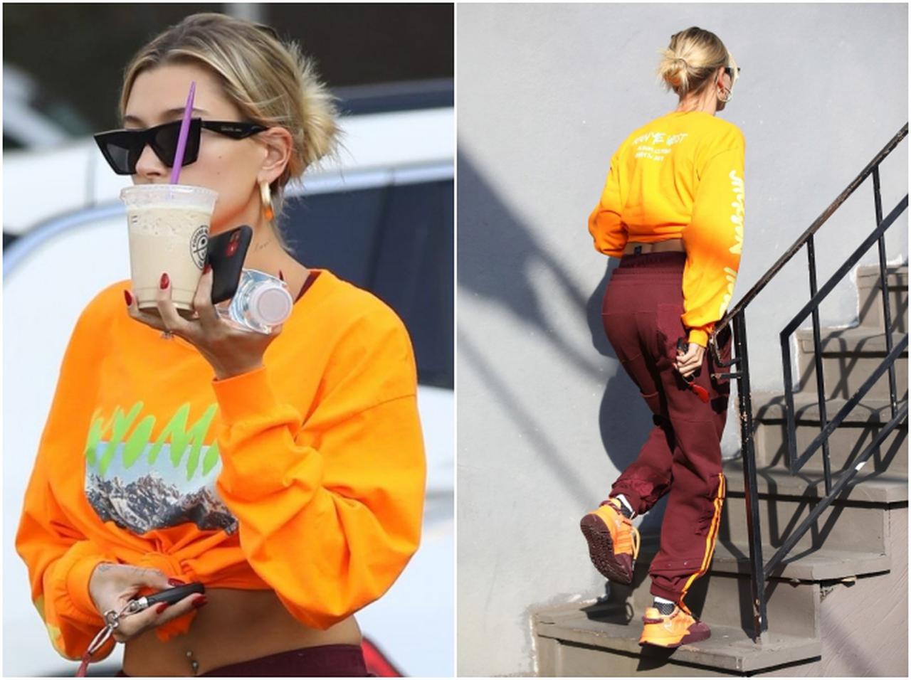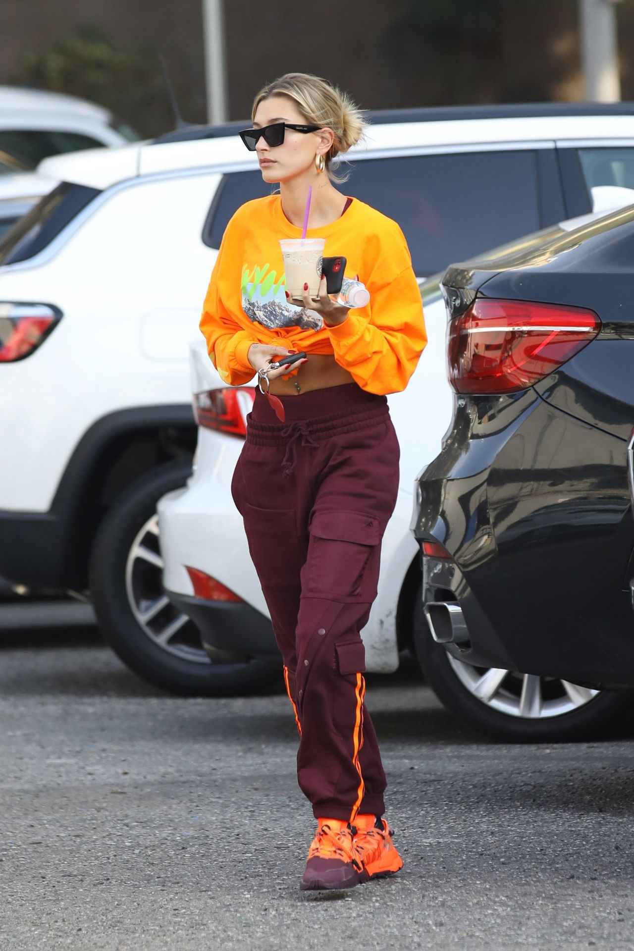 ビヨンセとのパートナーシップによるAdidasのコラボレート・コレクションAdidas x Ivy Park(アディダス×アイビーパーク)のカーゴパンツを愛用した、人気モデルのヘイリー・ビーバー。