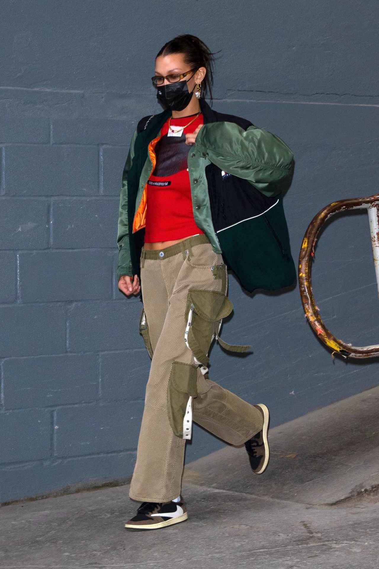 ミリタリーテイストがクールなDolce & Gabbana(ドルチェ&ガッバーナ)のローライズカーゴを愛用したトップモデルのベラ・ハディッド。プレ値がついている、 Air Jordan 1 x Travis Scott(トラヴィス・スコット × ナイキ エア ジョーダン 1 ロー)のスニーカーとオーバーサイズジャケットで旬なストリートルック。