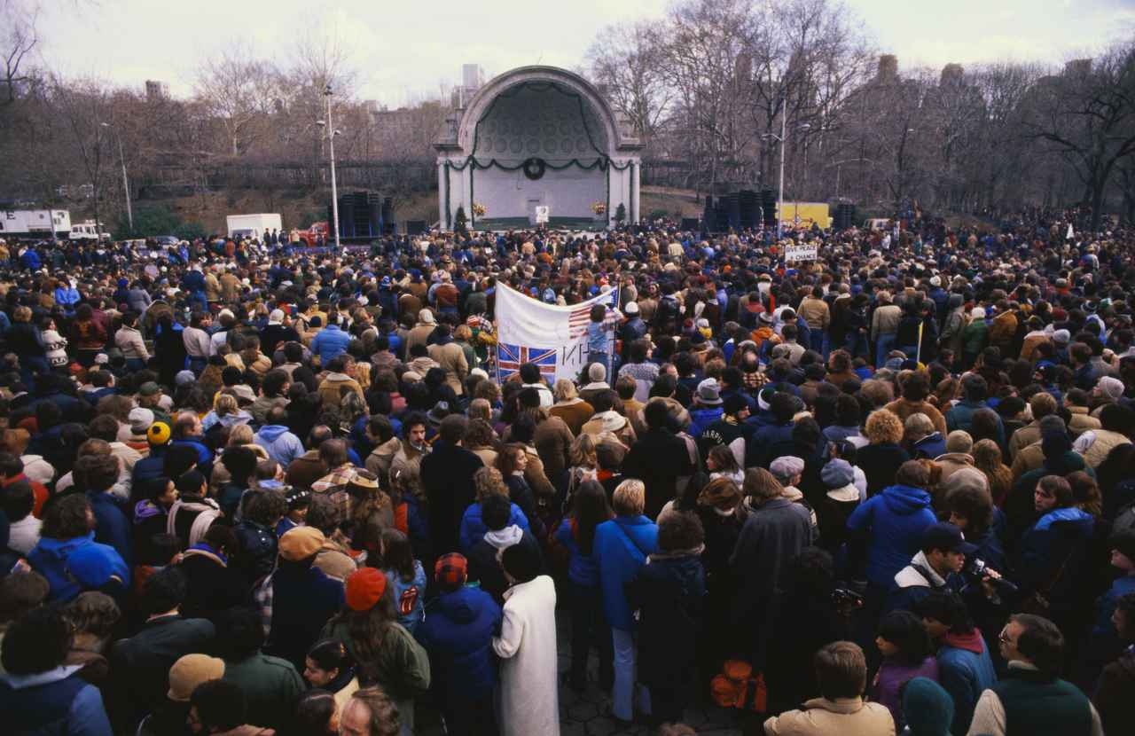 1980年12月14日、ニューヨークのセントラル・パークには、ジョン・レノンに10分間の黙とうをささげるため、10万人もの人々が集った。黙とうの前後30分は、若者たちに影響を与えたビートルズの音楽がスピーカーから流れていた。