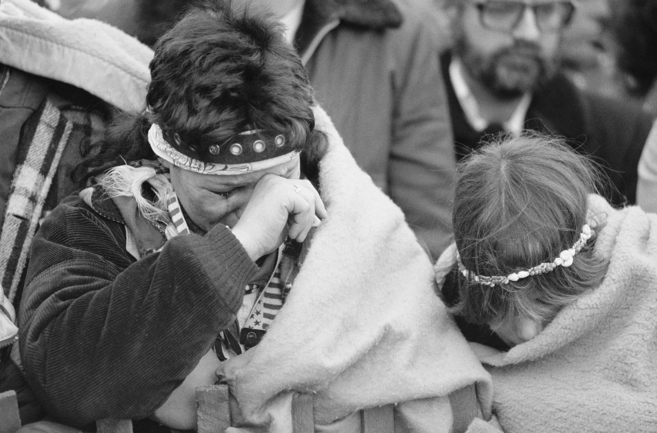 1980年12月14日、セントラル・パークで行われたジョン・レノンへの黙祷会ですすり泣くファン。
