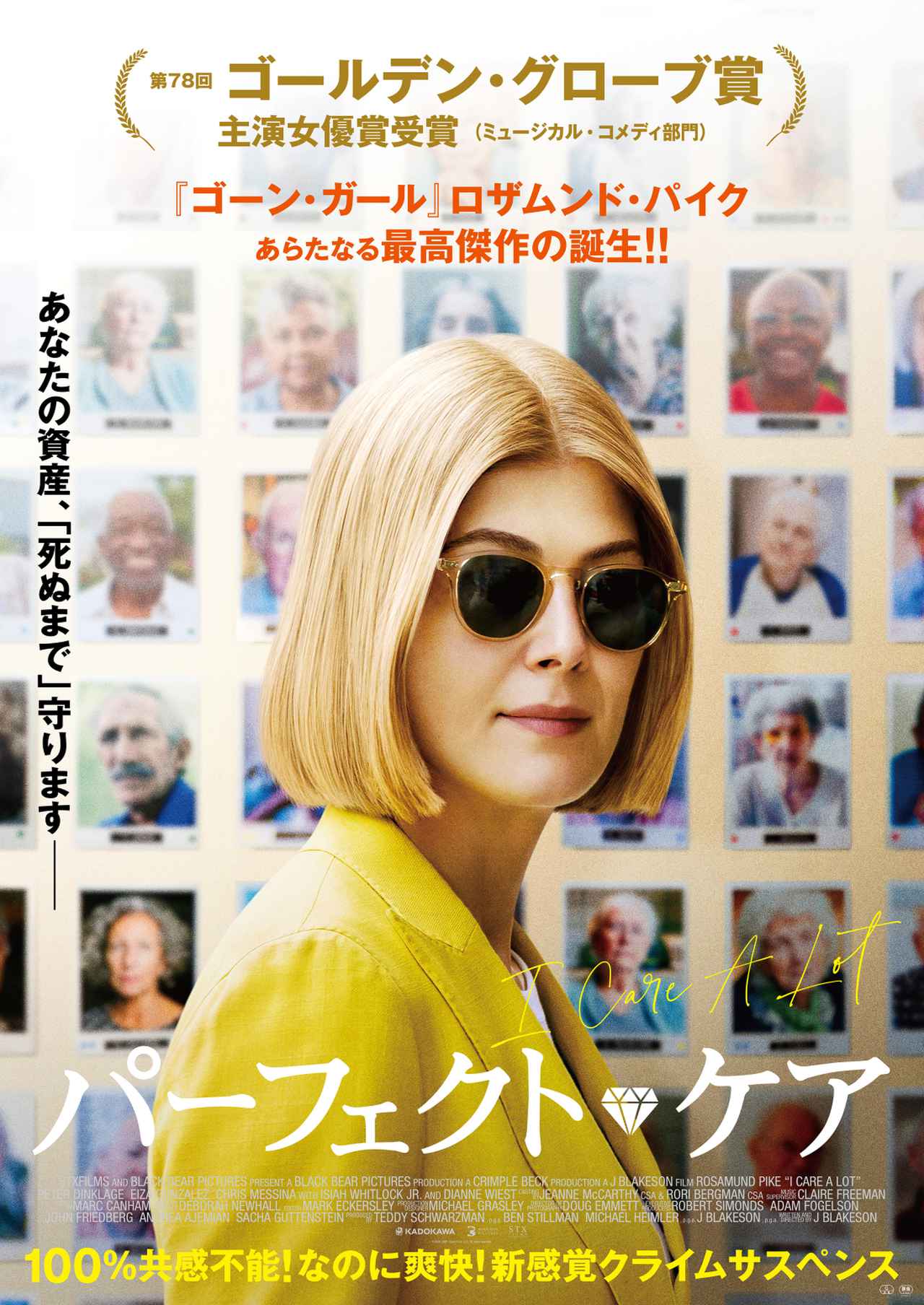 そして最新作『パーフェクト・ケア』では、アメリカの後見人制度を使って高齢者の資産を搾り取る悪徳主人公を熱演。完全なる悪人を応援してしまった瞬間に自分のモラルにハッとさせられる本作は、これまた議論を呼んだ。ロザムンド自身は演じるマーラ・グレイソンについて、「マーラは私がスクリーンで見たいと思っていた女性そのものだった。これまで男性にばかり許されてきた、残忍で野心的で、臆面もなく欲しいものを追い求める、そういうことが許される人物。彼女は勝ちにこだわっていて、お金を稼ぎたがっている。そして嫌われることに何の恐れも抱いていない。たしかに彼女は人に好かれないタイプだけど、でも愛おしくなり、応援してしまう」 と語っており、本作でキャリア初のゴールデン・グローブ賞を受賞した。