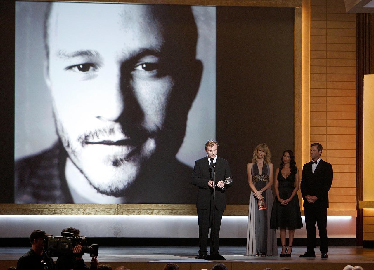 2009年の第14回放送映画批評家協会賞で助演男優賞を受賞したヒースの代わりにトロフィーを受け取ったノーラン監督。