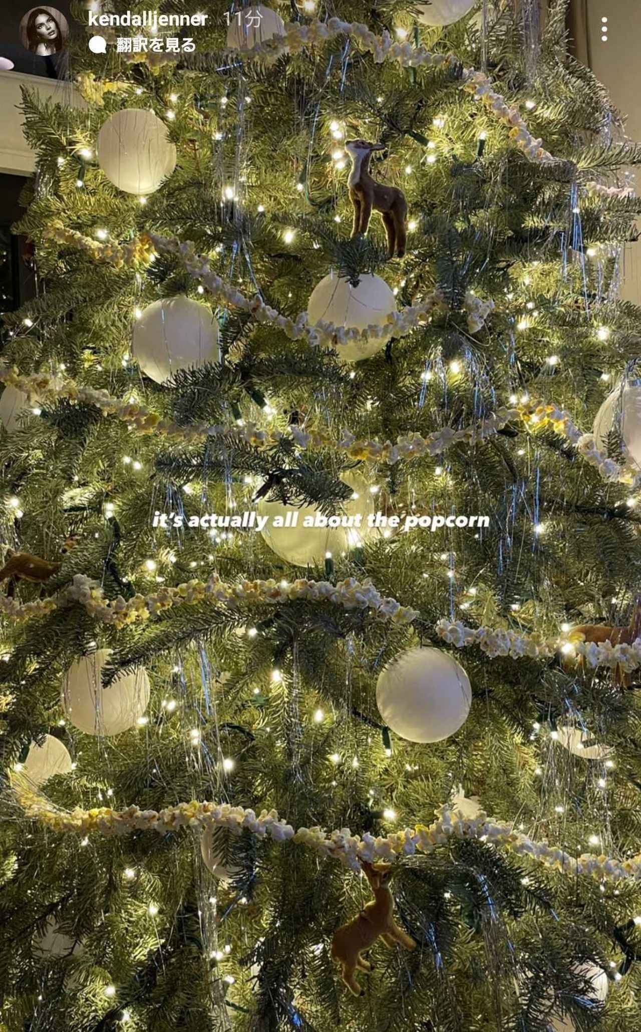 モデルのケンダル・ジェンナーが、自宅に飾っているクリスマスツリーを公開。そのツリーには、オーナメントと共にポップコーンがデコレーションされていた。(フロントロウ編集部)