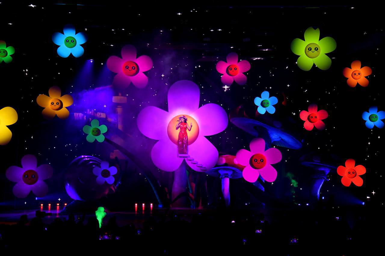 2021年12月からラスベガスでスタートした、ケイティ・ペリーの常設公演「PLAY」は、カラフルでキラキラしたケイティの世界観がふんだんに詰め込まれており、会場にはケイティとオーランド・ブルームの第1子であるデイジーを彷彿させるオブジェなども登場した。