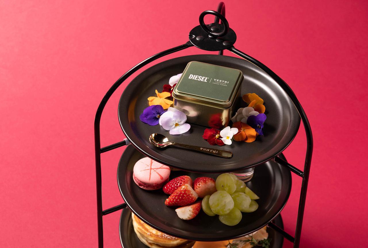 今回のコラボレーションでは、VESTRIの代表作「アンティーカ・ジャンドゥイア」を特別にアレンジした、DIESELバレンタイン限定のピスタチオフレーバー「フォンデンテ・ピスタッキオ」が登場。そしてディーゼルが手がける「グロリアスチェーンカフェ」では、「フォンデンテ・ピスタッキオ」を主役にしたアフタヌーンティセットが60食限定で展開される。