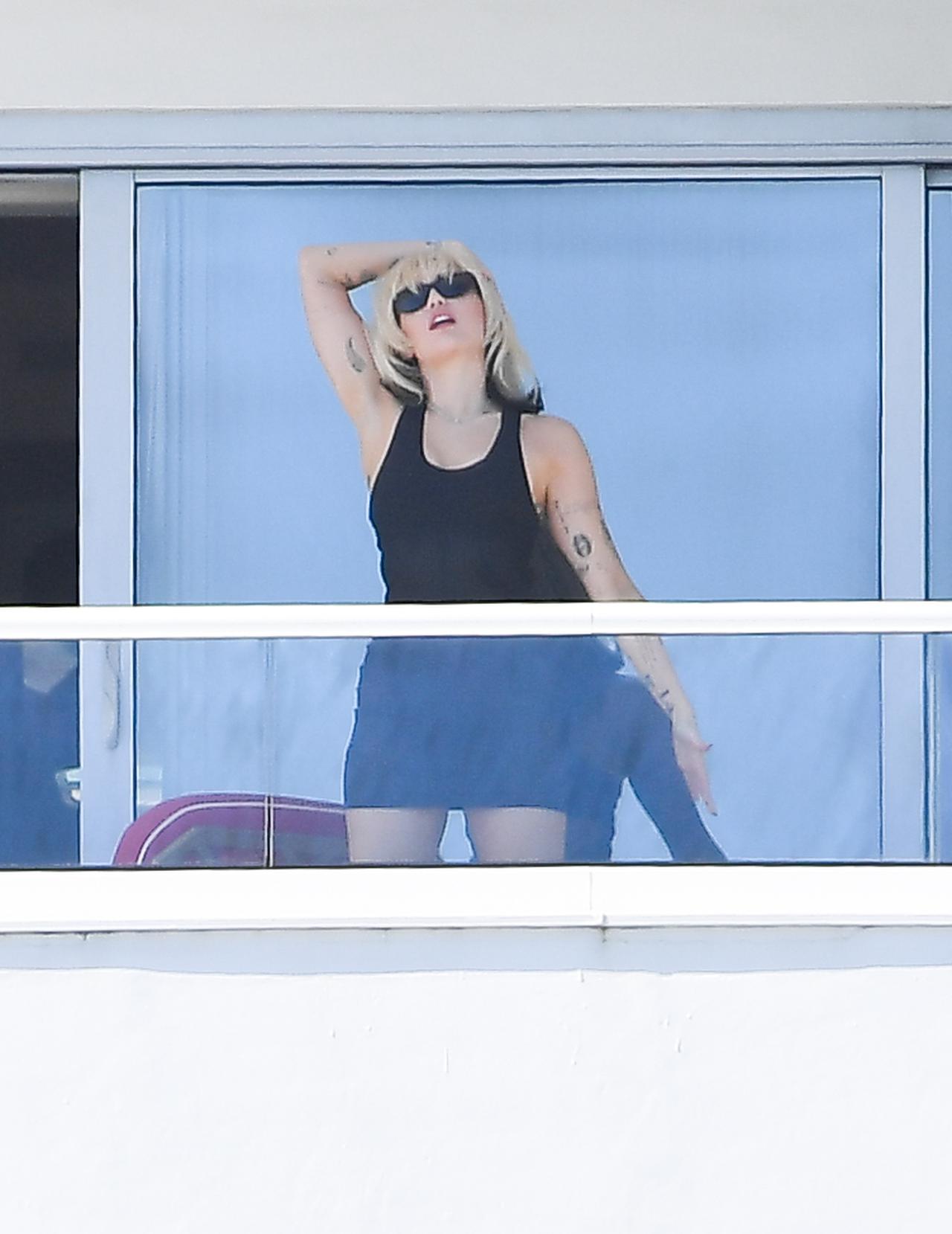 マイリーはこの日、バルコニーでくつろいでいたところをパパラッチにキャッチされており、ストレッチしているところなどが撮影されている。