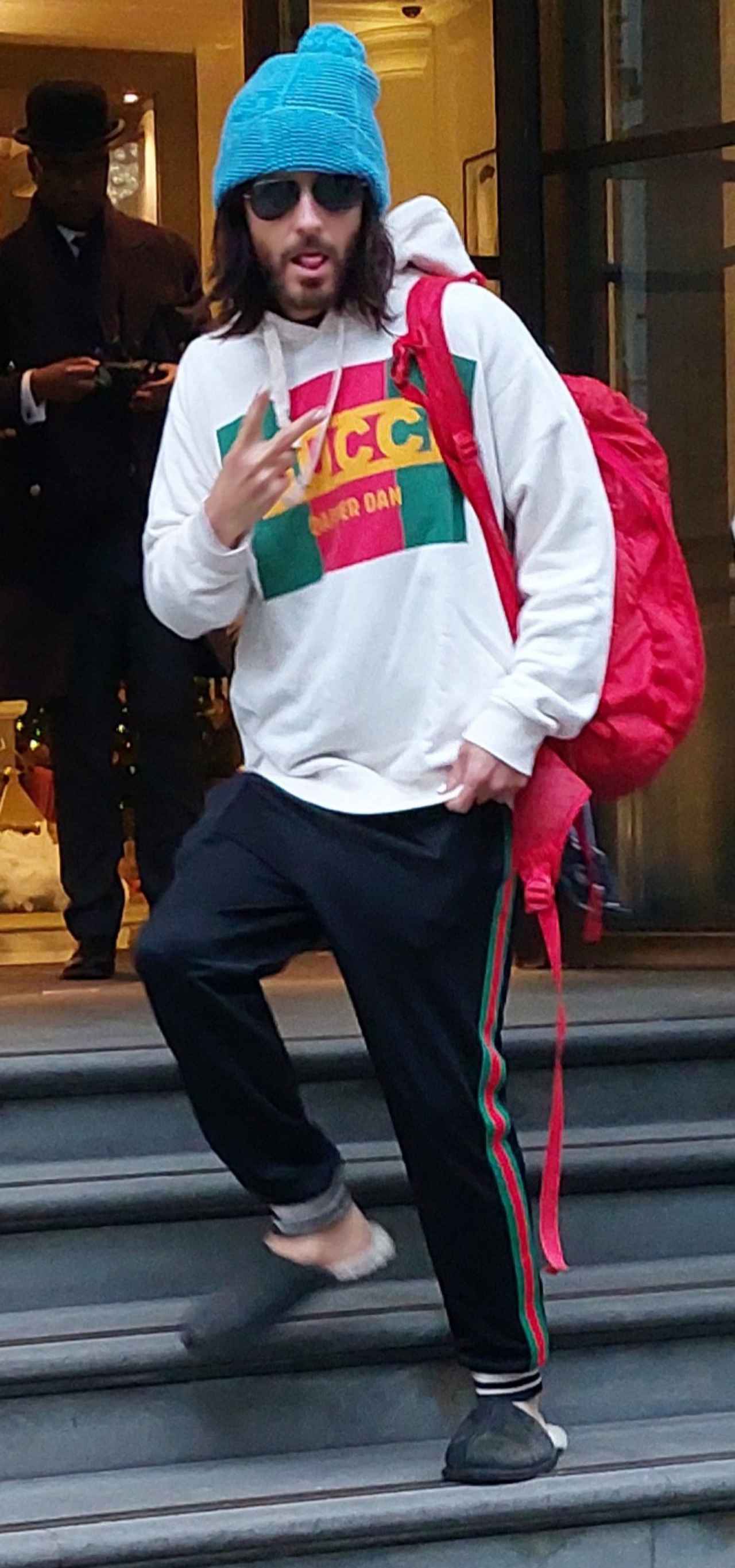 ガガだけでなく、ジャレッドや、劇中で占い師のピーナ・アウリエンマを演じたサルマ・ハエックも、この時期には様々に目を引くファッションを披露していた。ジャレッドはあからさまにグッチと書かれたパーカーに、グッチの3色のストライプが入ったジャージのパンツを着てアピール。