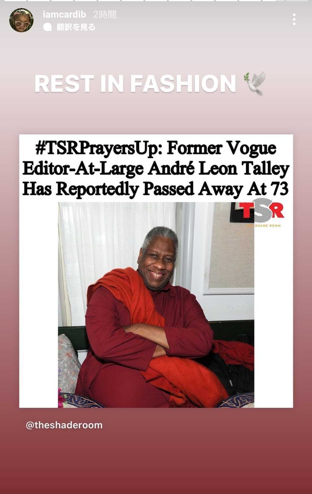 「ファッションの世界で堂々とした力を発揮していた。今日は少し良くない日です。アンドレ・レオン・タリー、素敵に眠ってください」